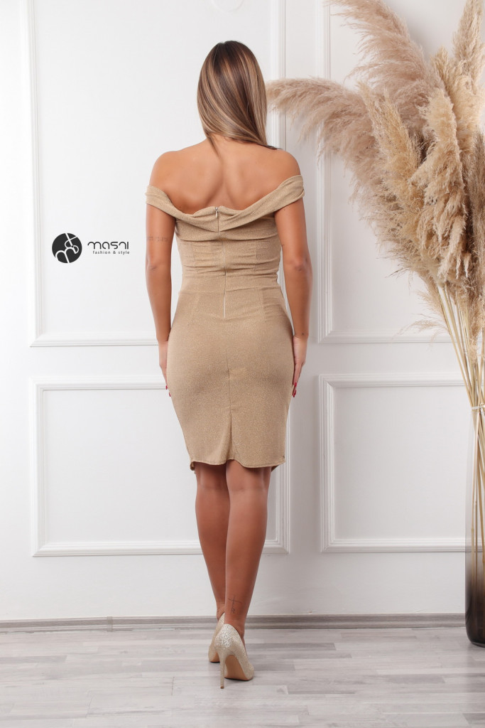 Ejtett vállú, dekoltált, csillogó - elasztikus anyagú alakkövető miniruha