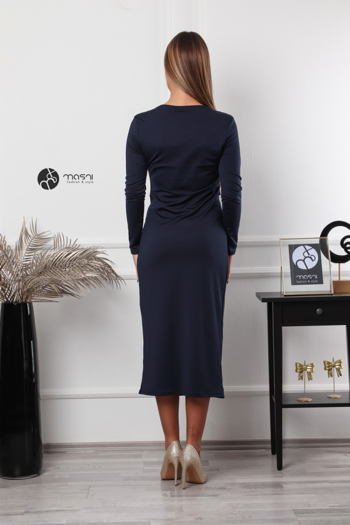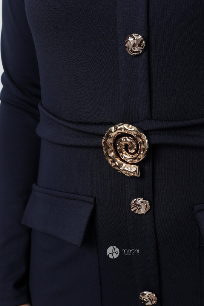 Kerek nyakú, hosszú ujjú, arany gombos, 2 zsebes, egyszínű, poli alakkövető maxi ruha