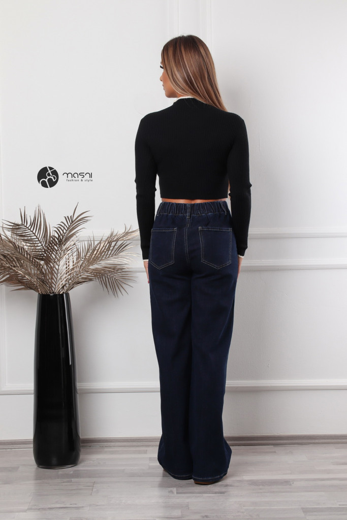 Baglyos kitűzős rövid derekú kötött felső fekete