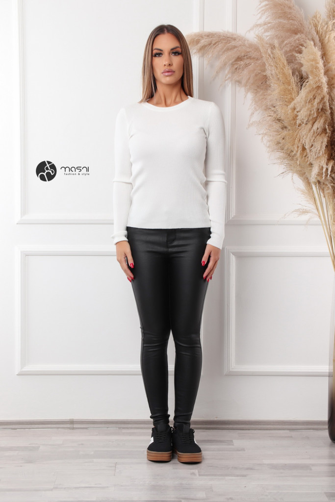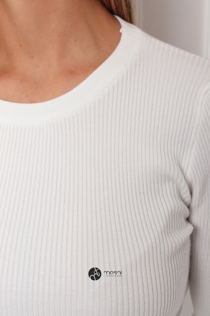 Hosszú ujjú, kerek nyakú, bordás egyszínű kötött pulcsi