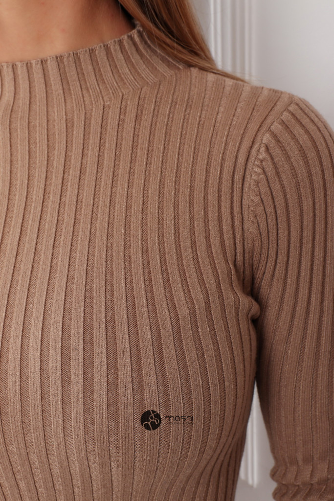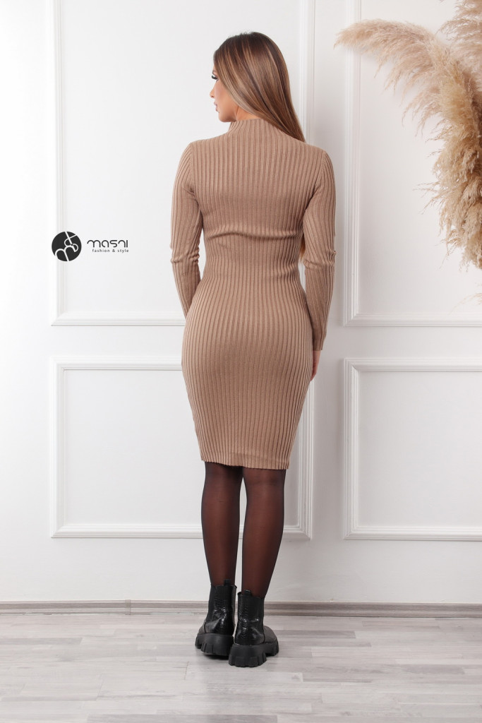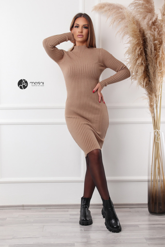Bordás félgarbós nyakú kötött ruha camel
