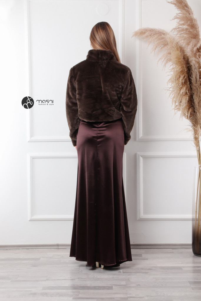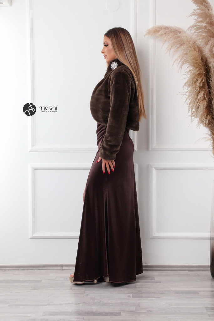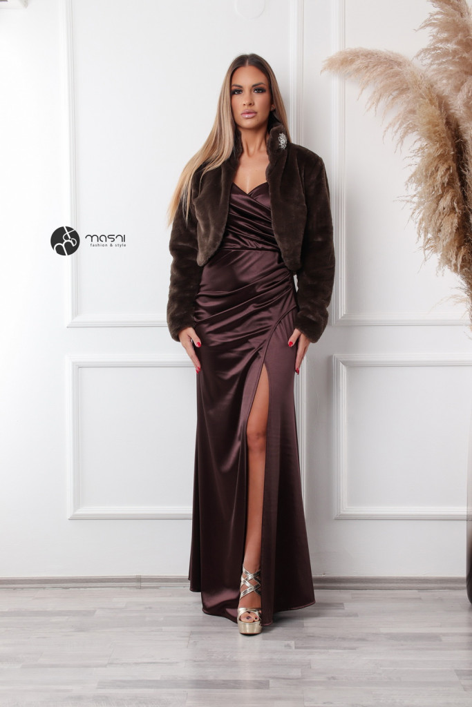 Hosszú ujjú, bross tűs, egyszínű műszőrme boleró
