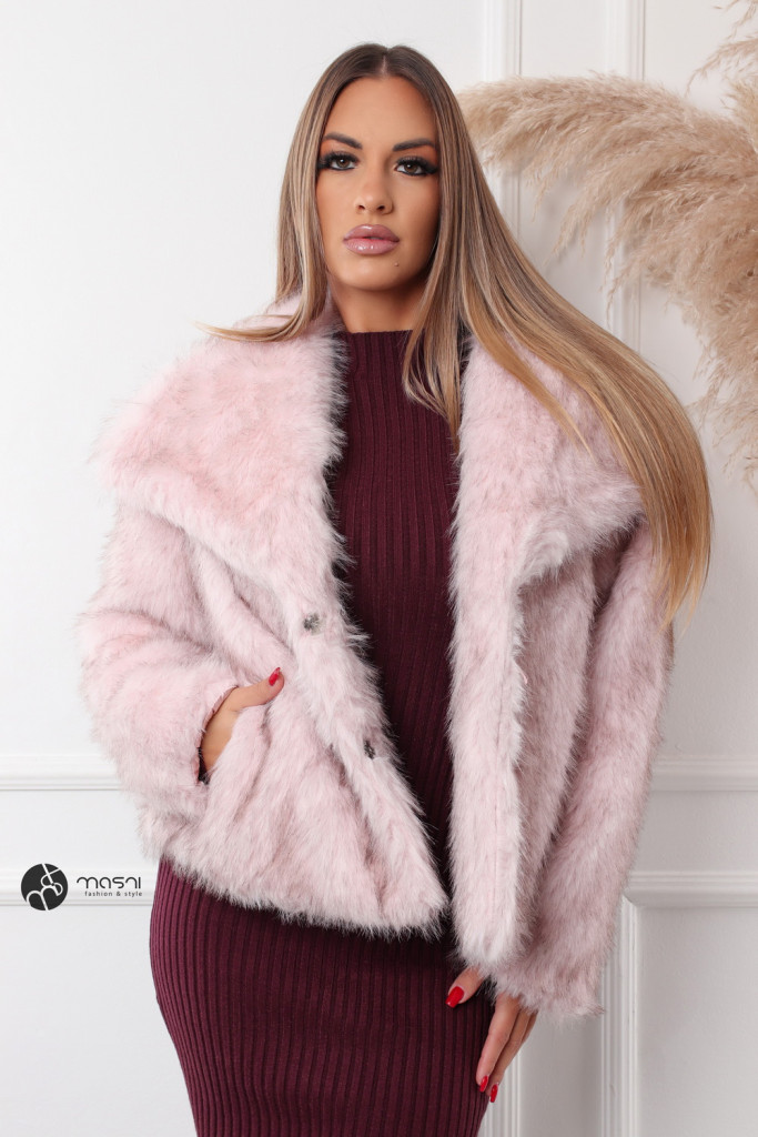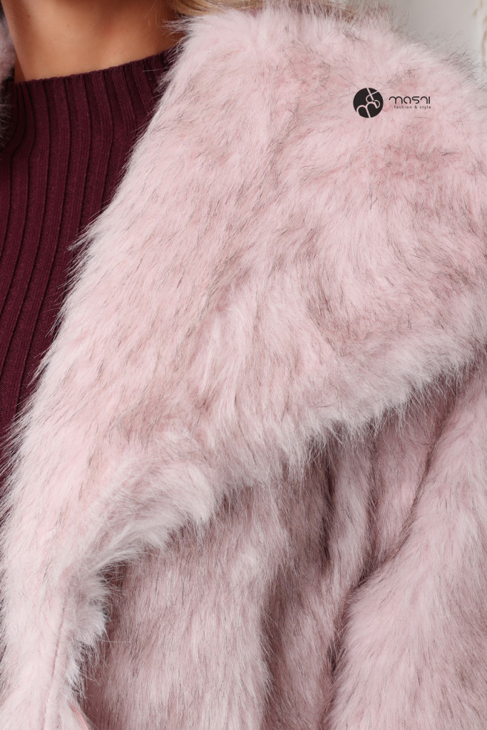 Nagy galléros, patentos gombolású, 2 zsebes műszőrme kabát