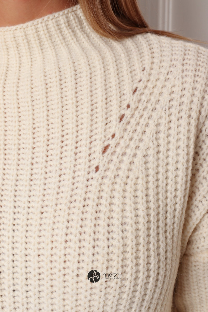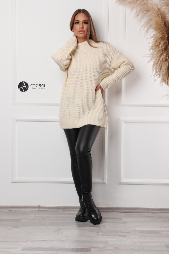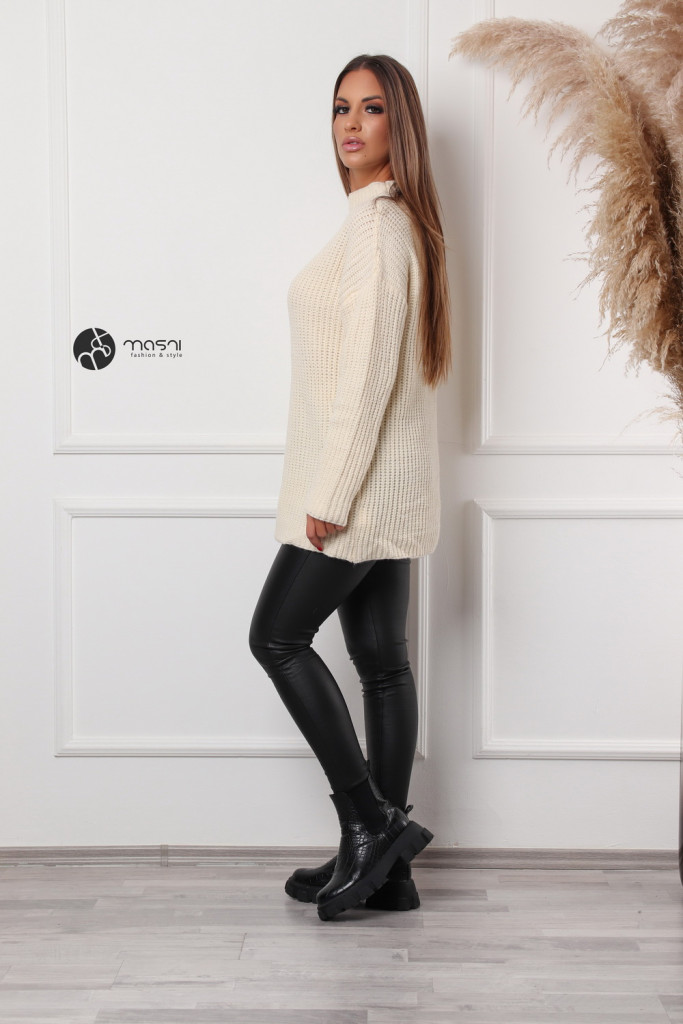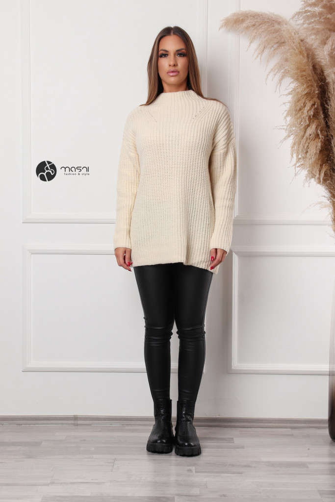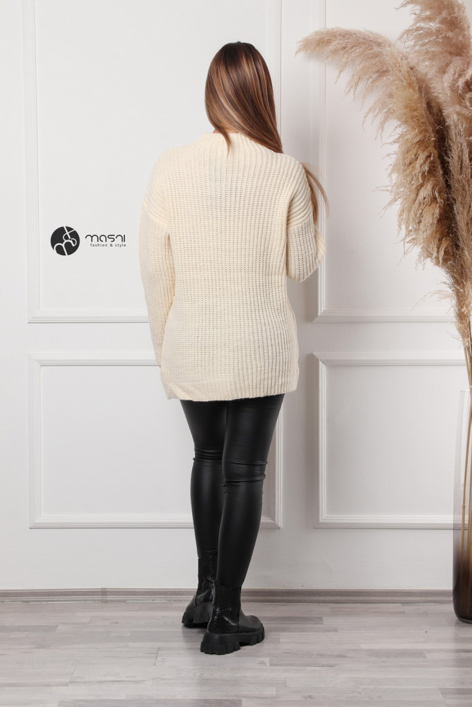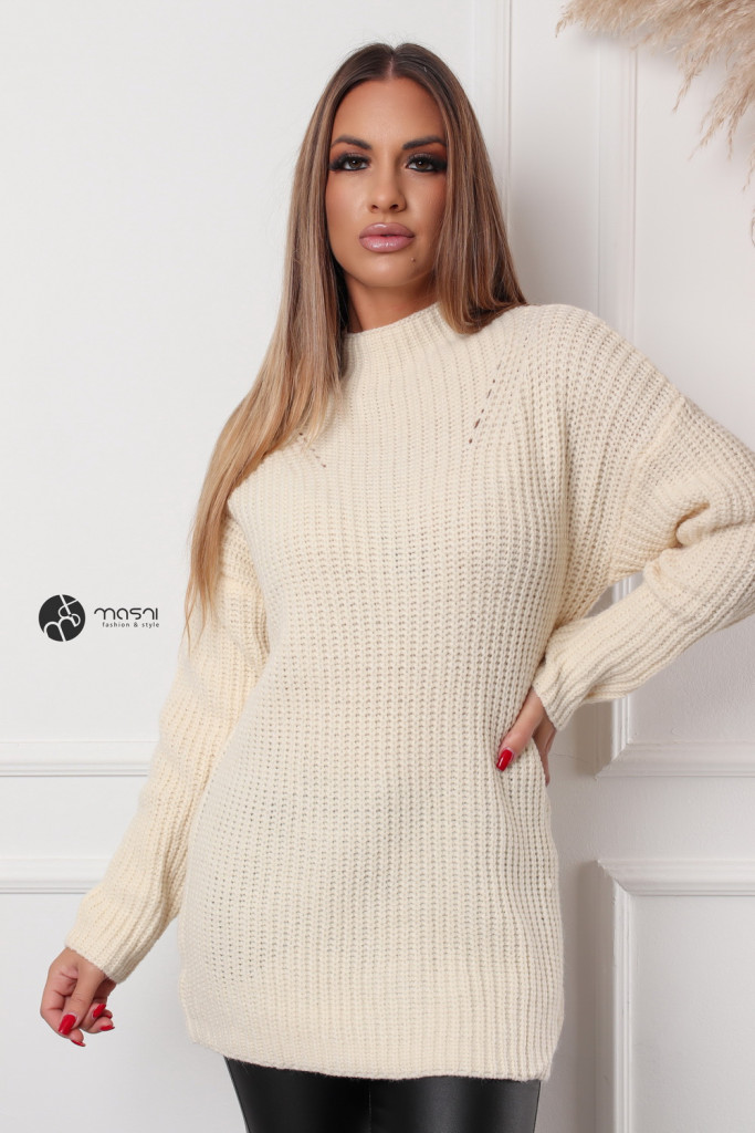 Hosszú ujjú, magas (félgarbós) nyakú, hosszított egyszínű kötött pulcsi