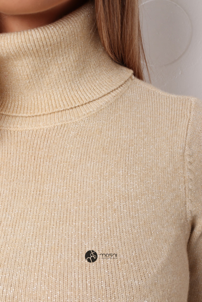 Hosszú ujjú, garbós nyakú,anyagában csillogó kötött ruha