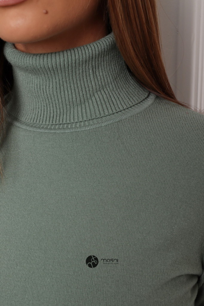 Garbós nyakú basic kötött felső pasztell zöld