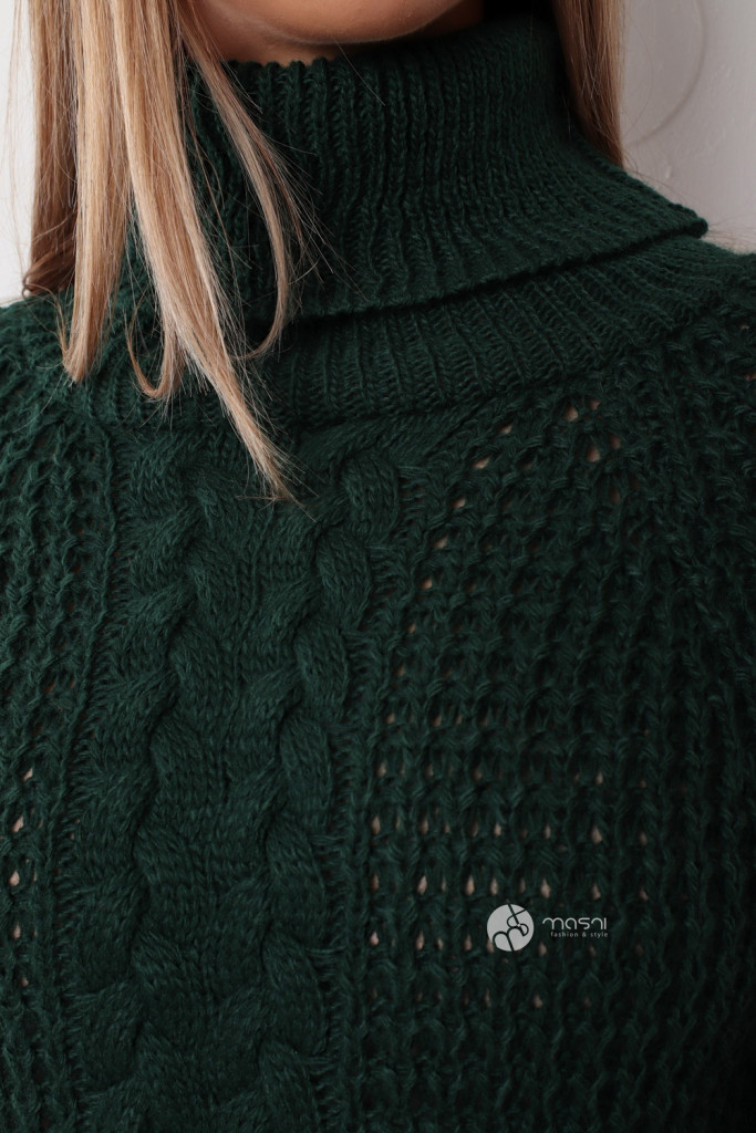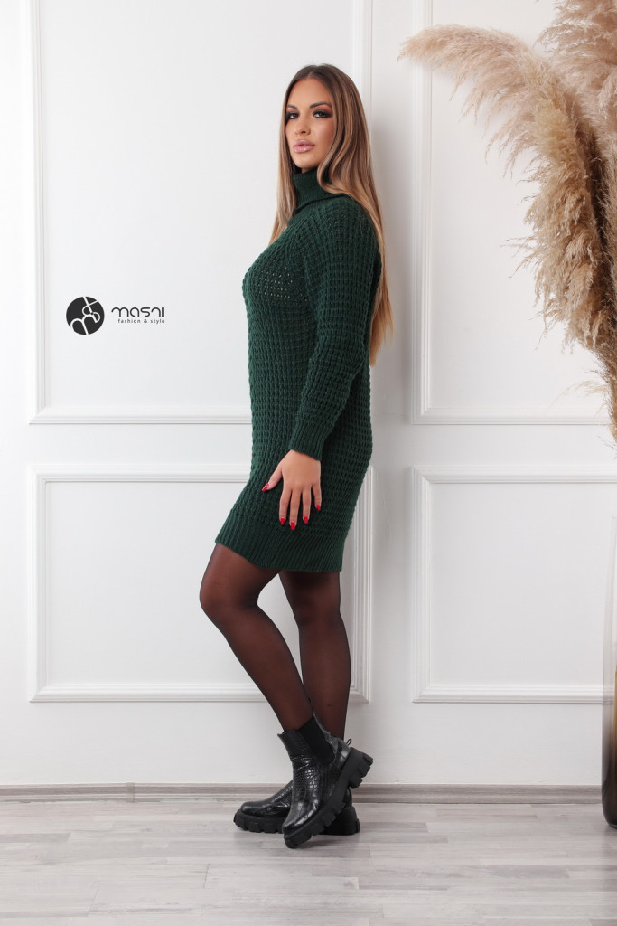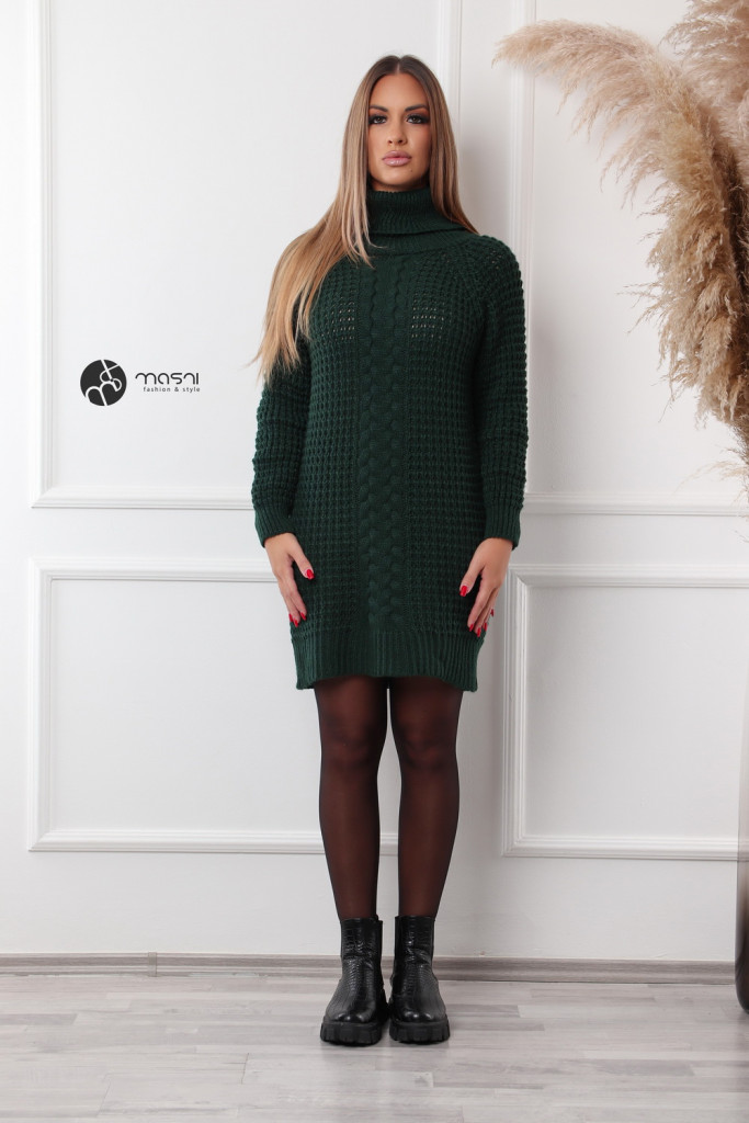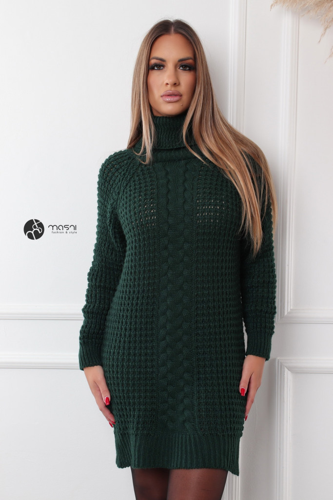Hosszú ujjú, garbós nyakú, középen fonott mintás, vastag kötésű egyszínű tunika/ruha