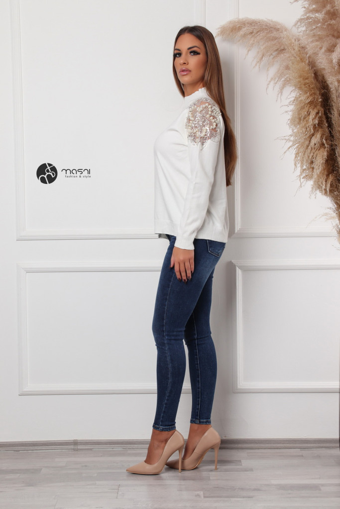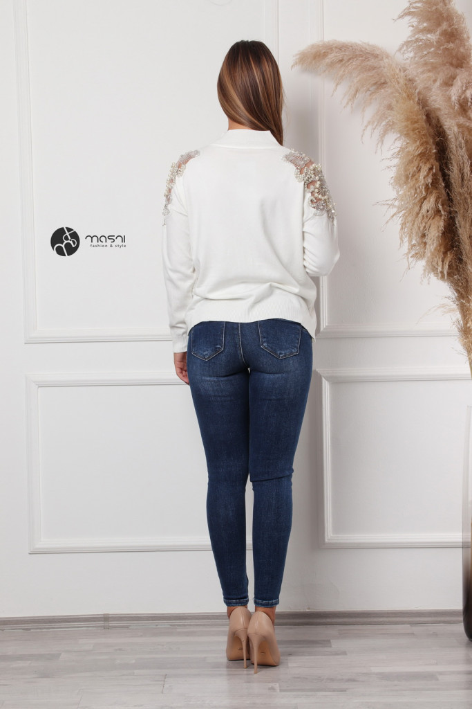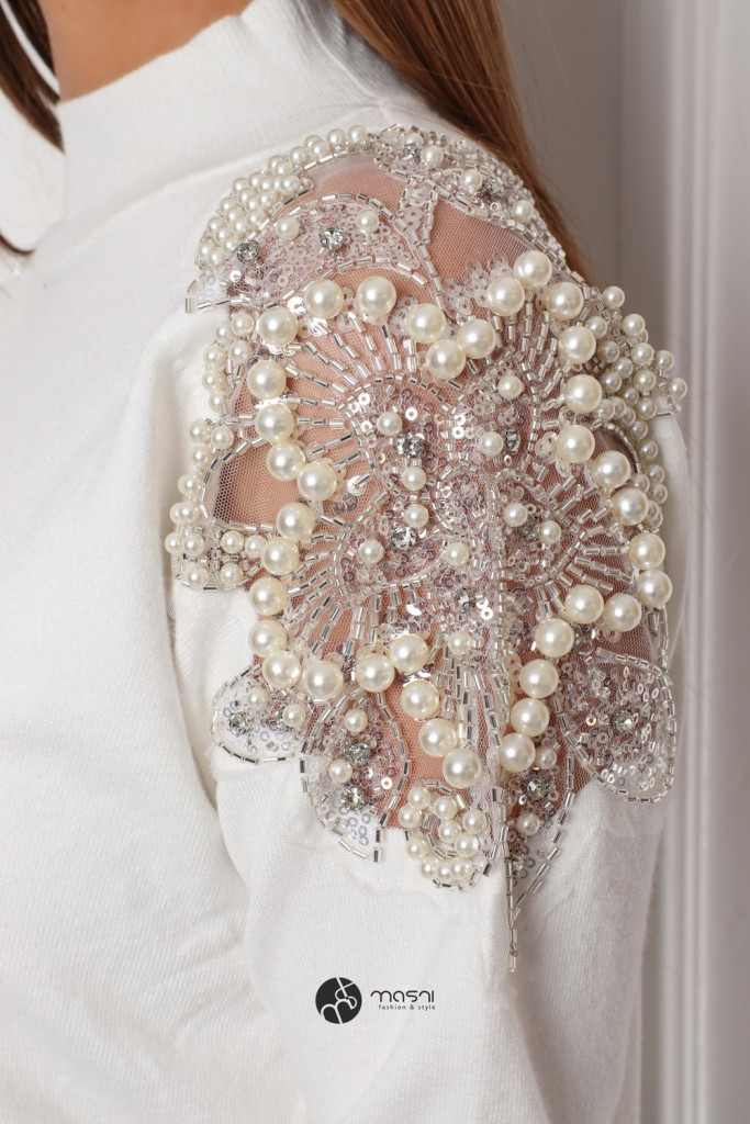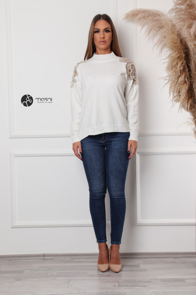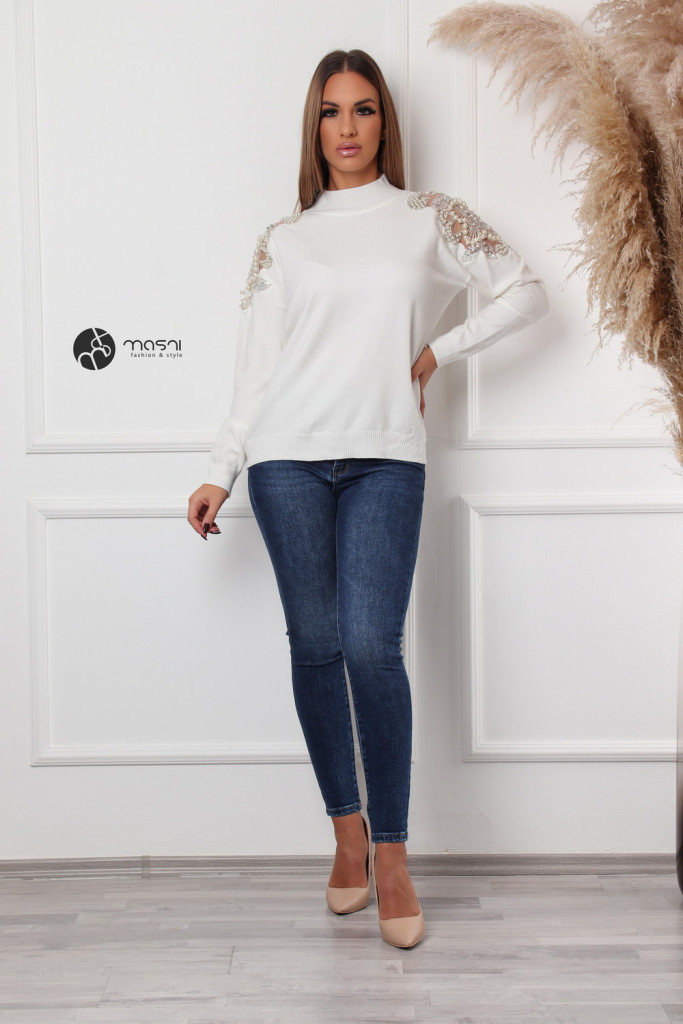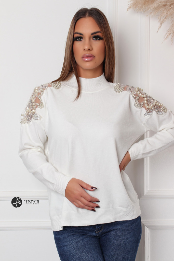 Gyöngyös vállú kötött pulcsi fehér