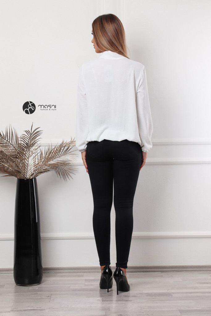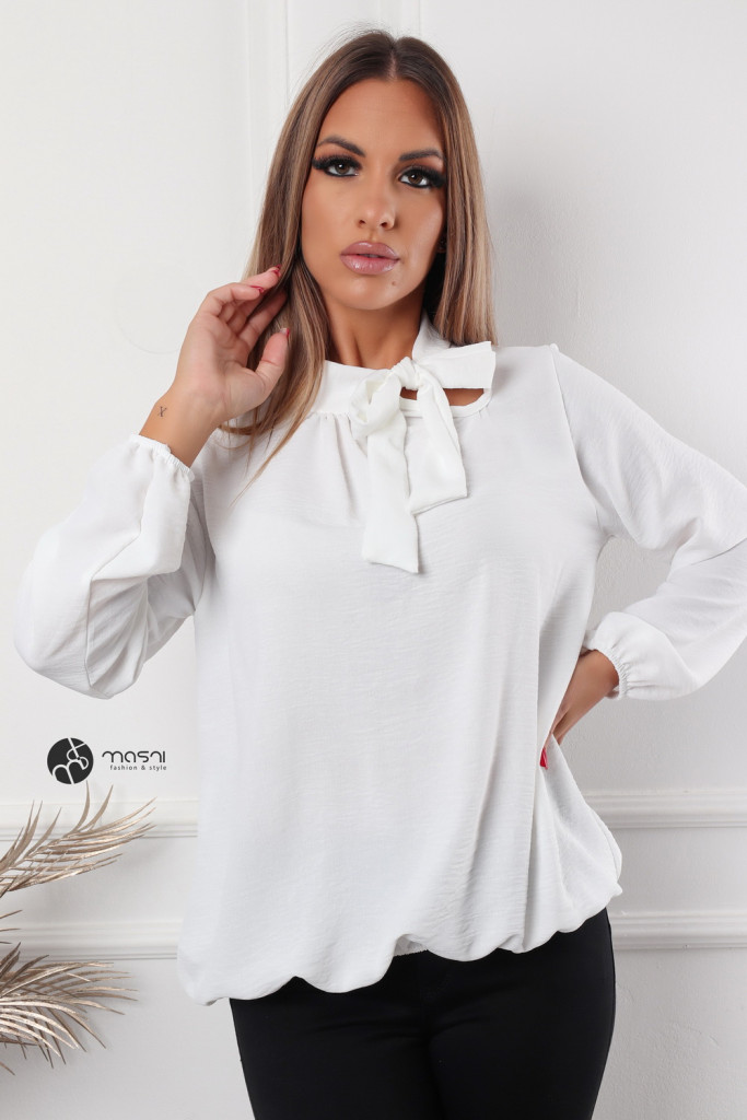 Hosszú ujjú, nyakán megkötős, derékban gumis, egyszínű felső