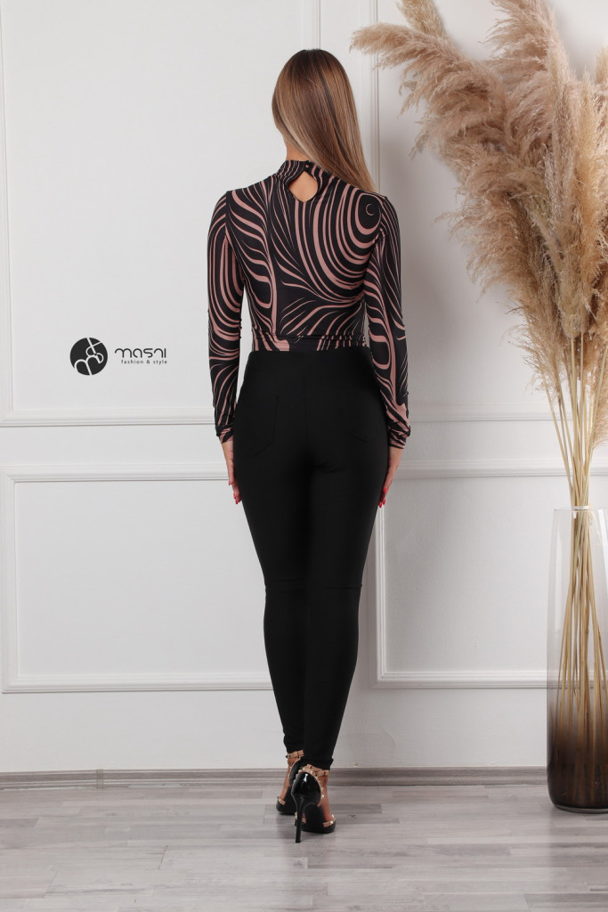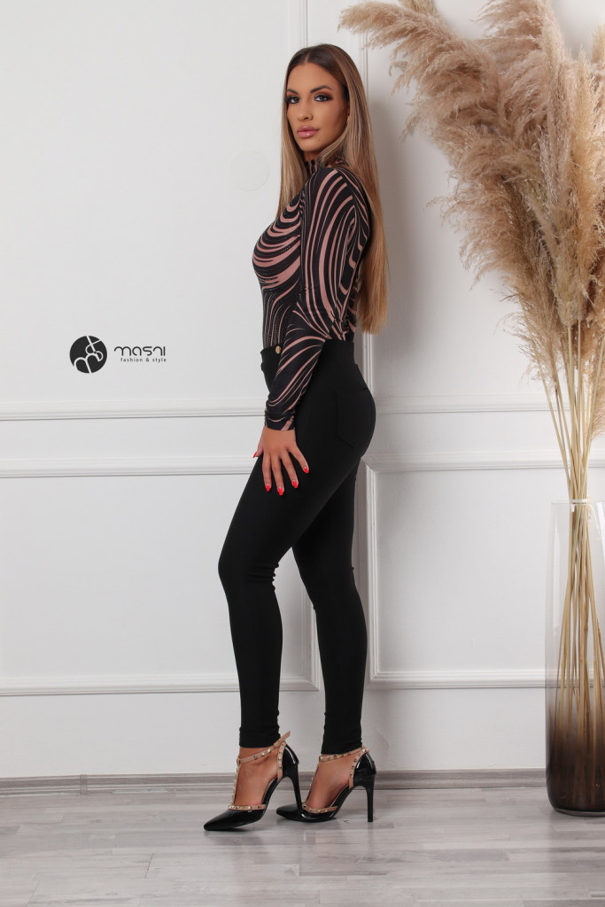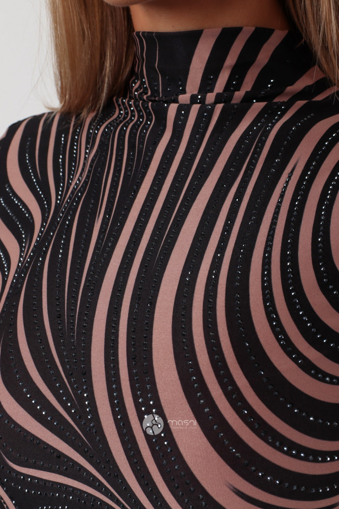 Hosszú ujjú, magas nyakú, kövezett, hullám mintás alakkövető body