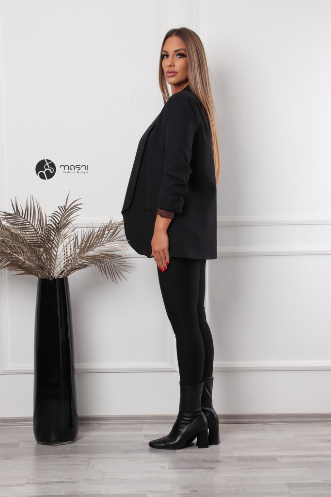 Húzott ujjú zakó nagy méret (L/XL) fekete
