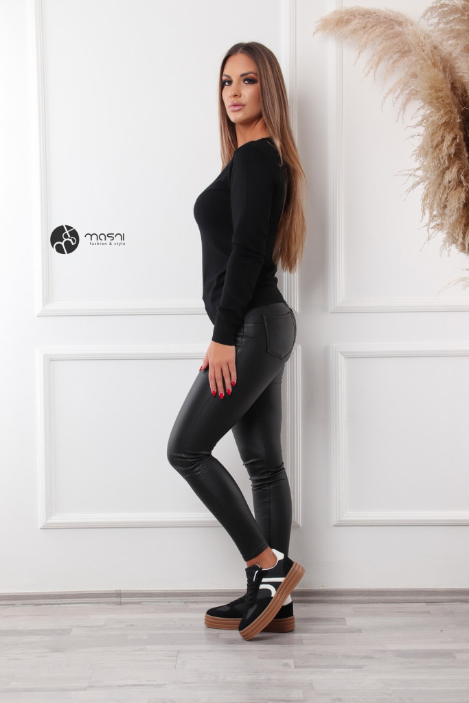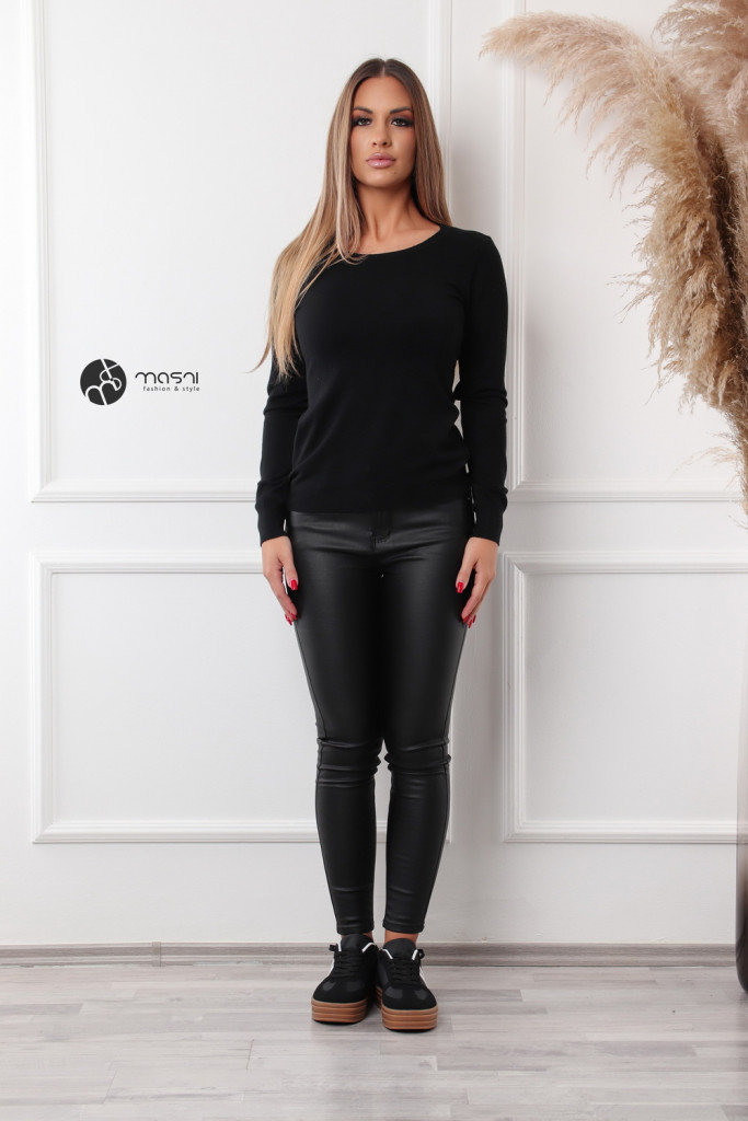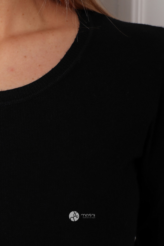 Kerek nyakú basic kötött felső fekete