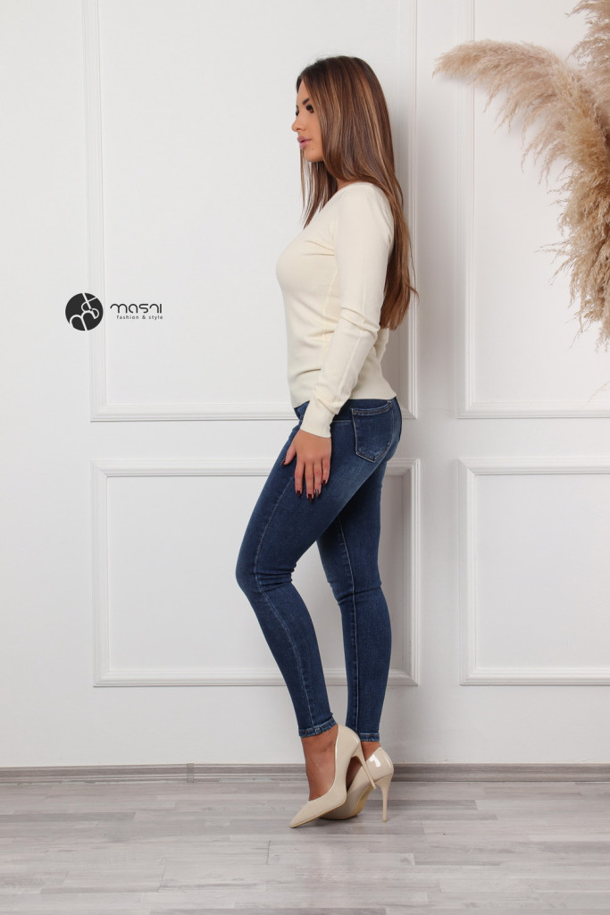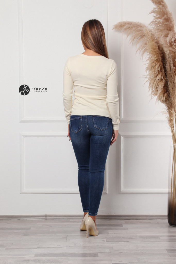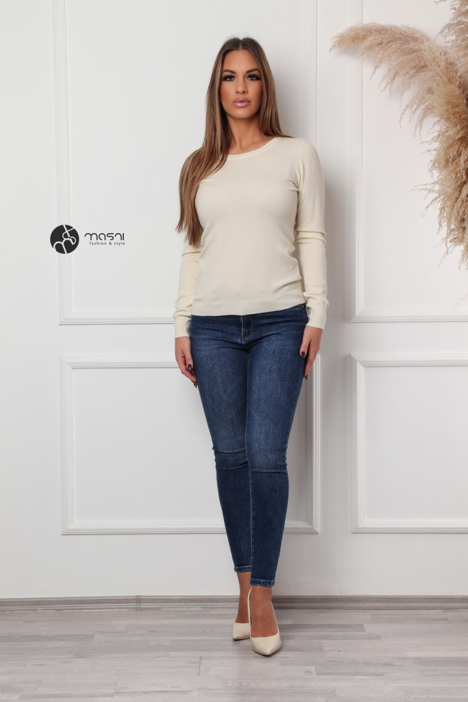 Hosszú ujjú, kerek nyakú, egyszínű kötött basic pulcsi