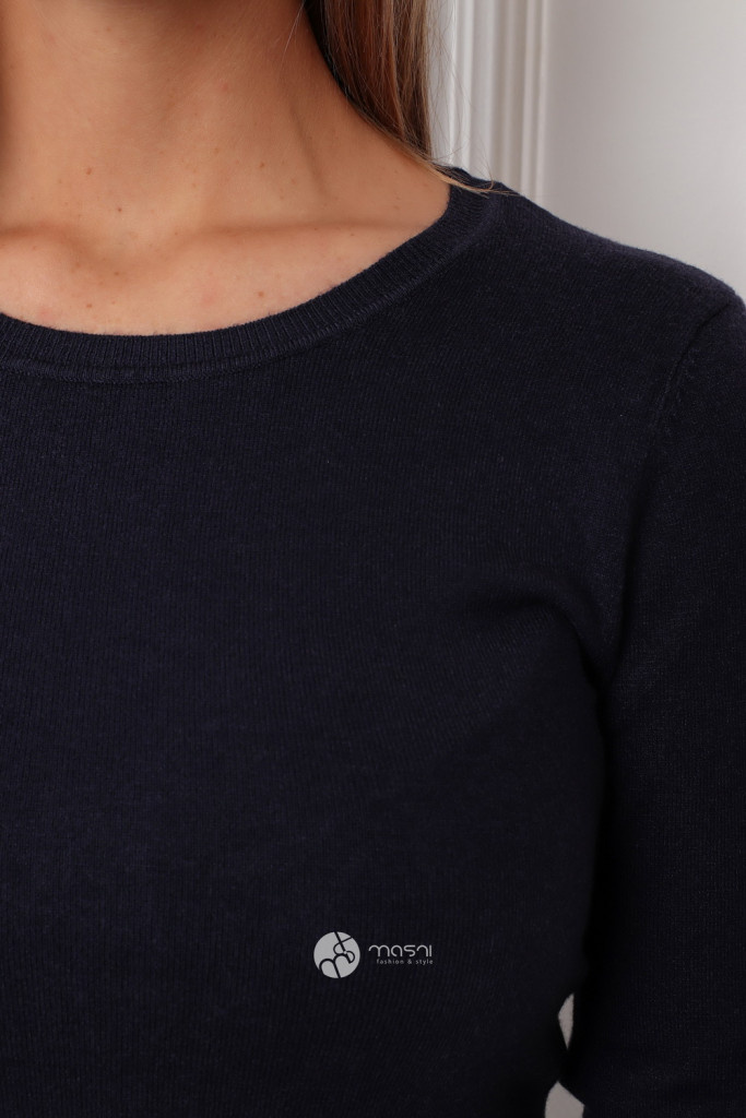 Hosszú ujjú, kerek nyakú, egyszínű kötött basic pulcsi