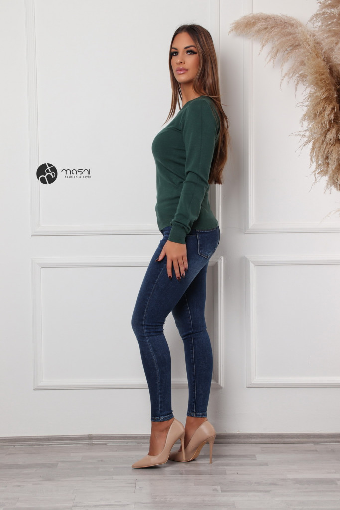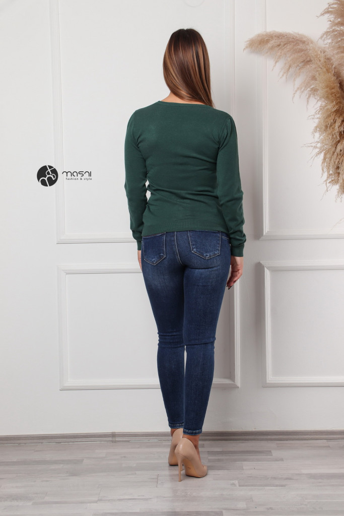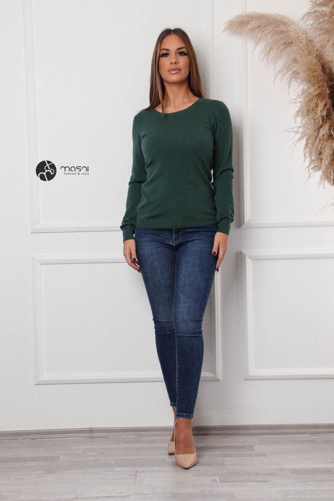 Hosszú ujjú, kerek nyakú, egyszínű kötött basic pulcsi