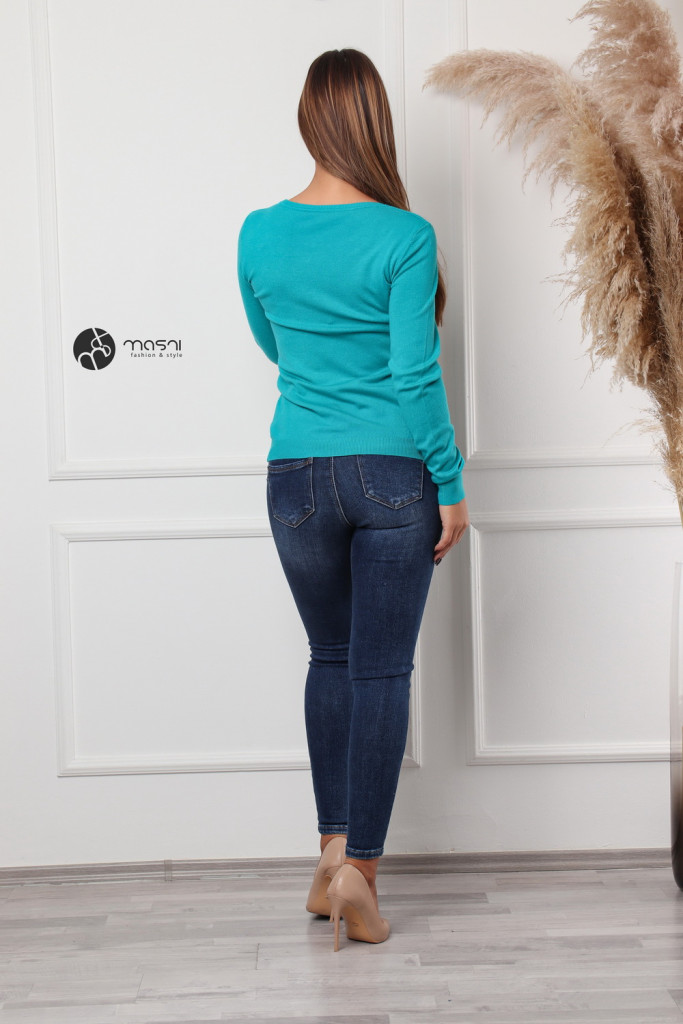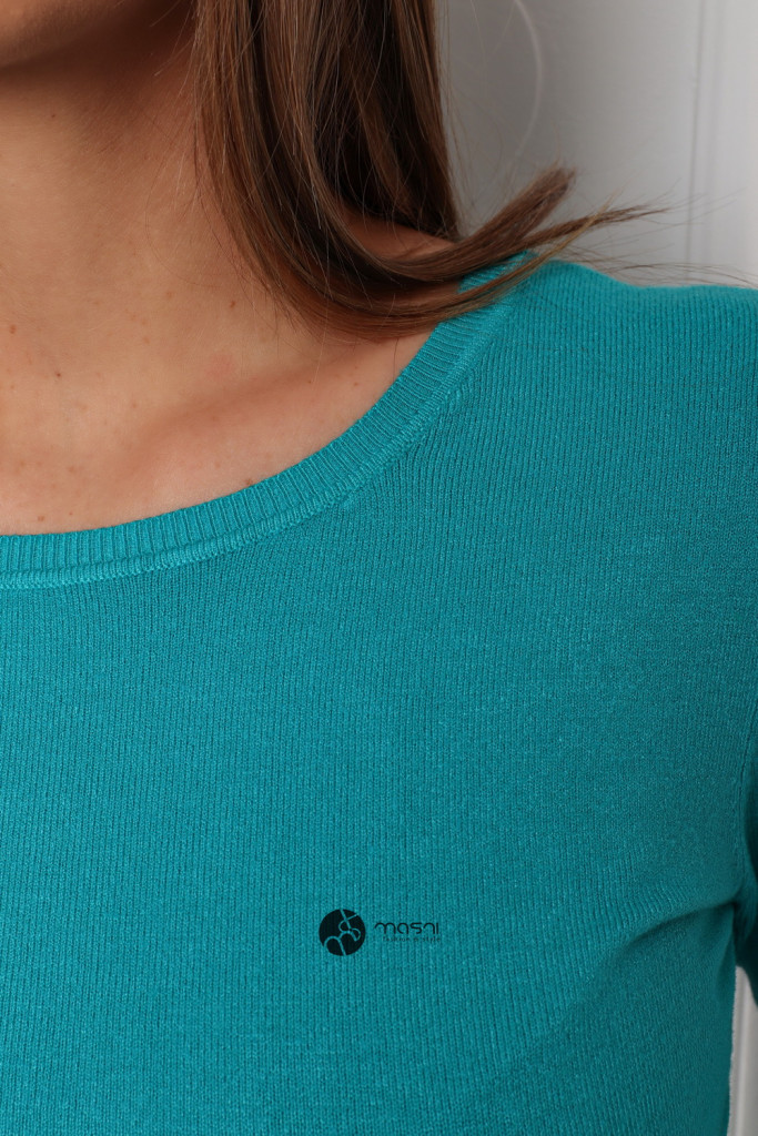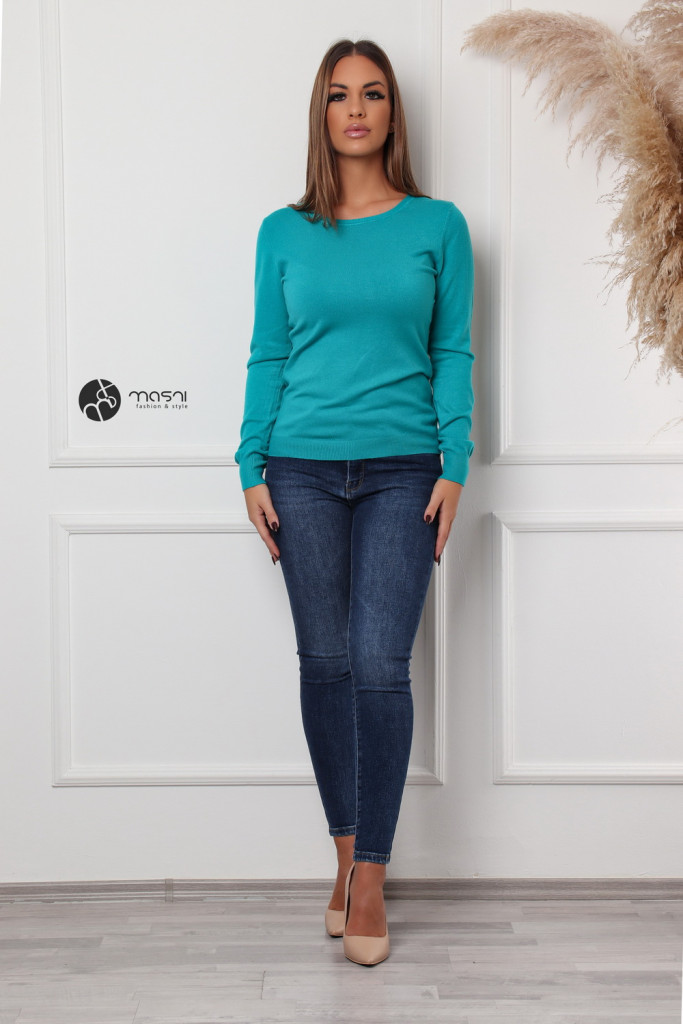 Kerek nyakú basic kötött felső türkizkék