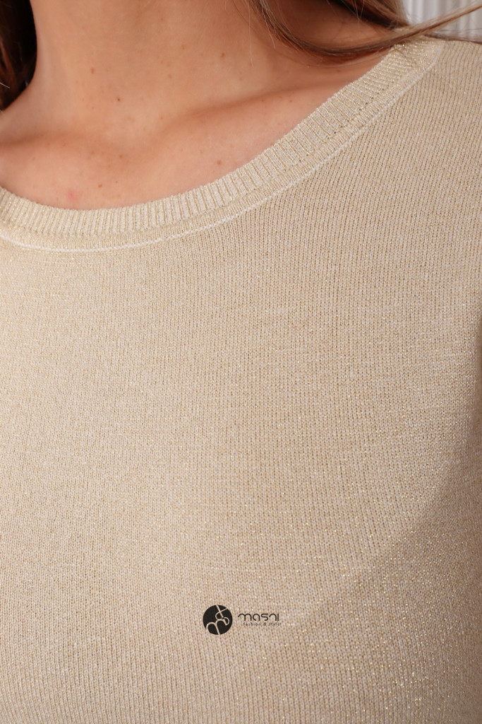 Hosszú ujjú, kerek nyakú, csillogó anyagú kötött pulcsi