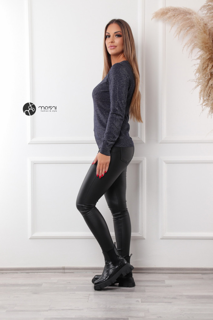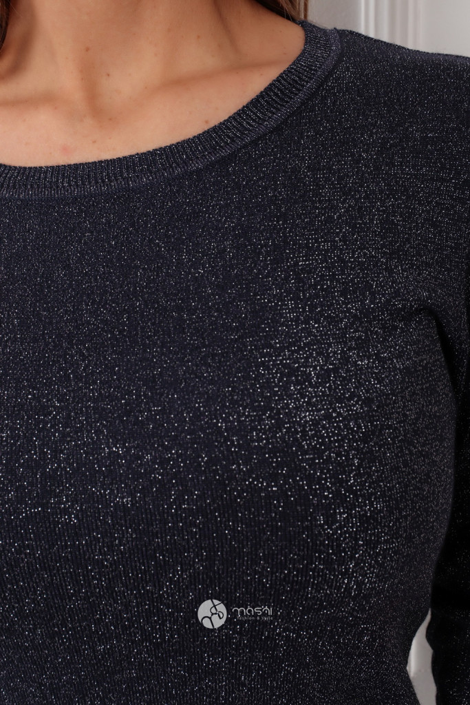 Hosszú ujjú, kerek nyakú, csillogó anyagú kötött pulcsi