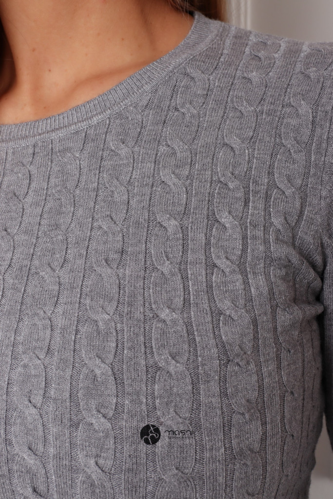 Kerek nyakú fonott mintás kötött felső szürke