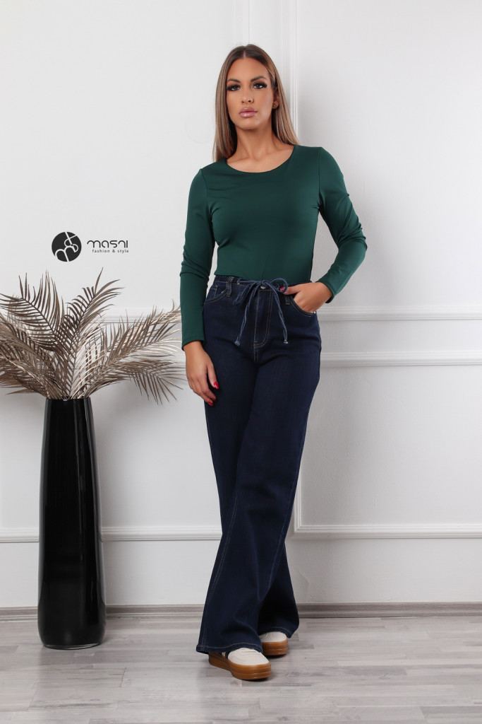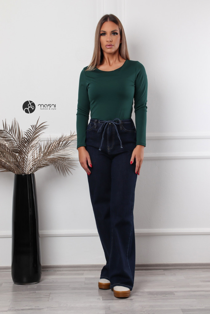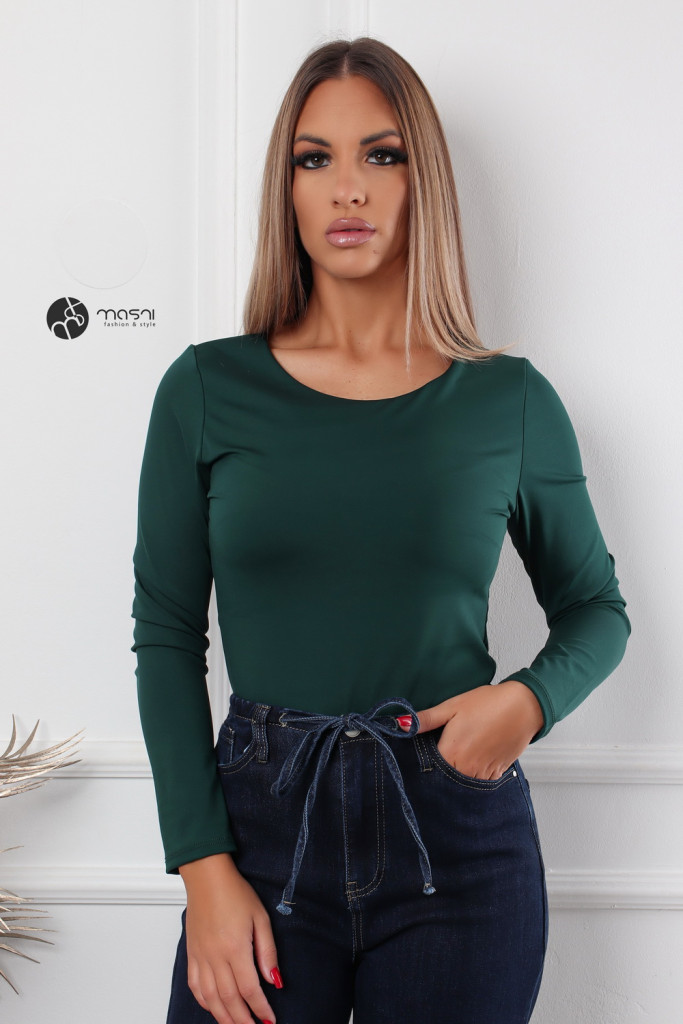 Kerek nyakú, hosszú ujjú poli body zöld