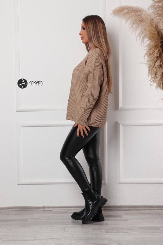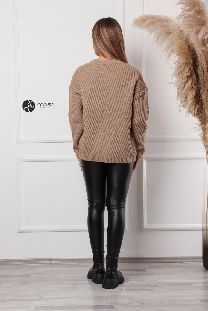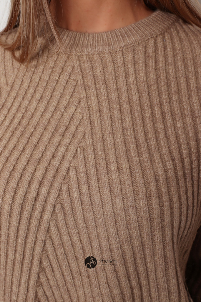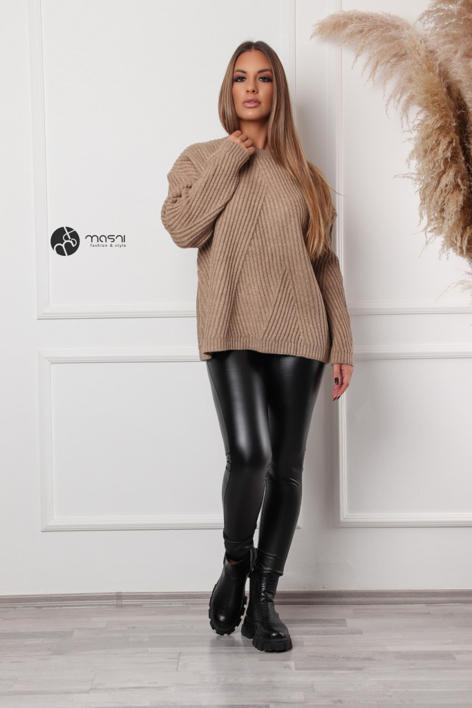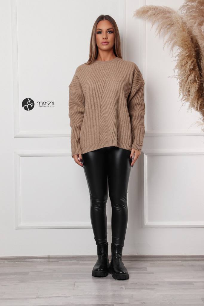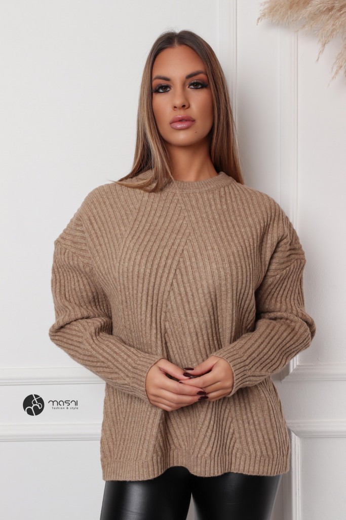 Hosszú ujjú, kerek nyakú, egyszínű, csíkos kötésű, oversize vastag kötött pulcsi