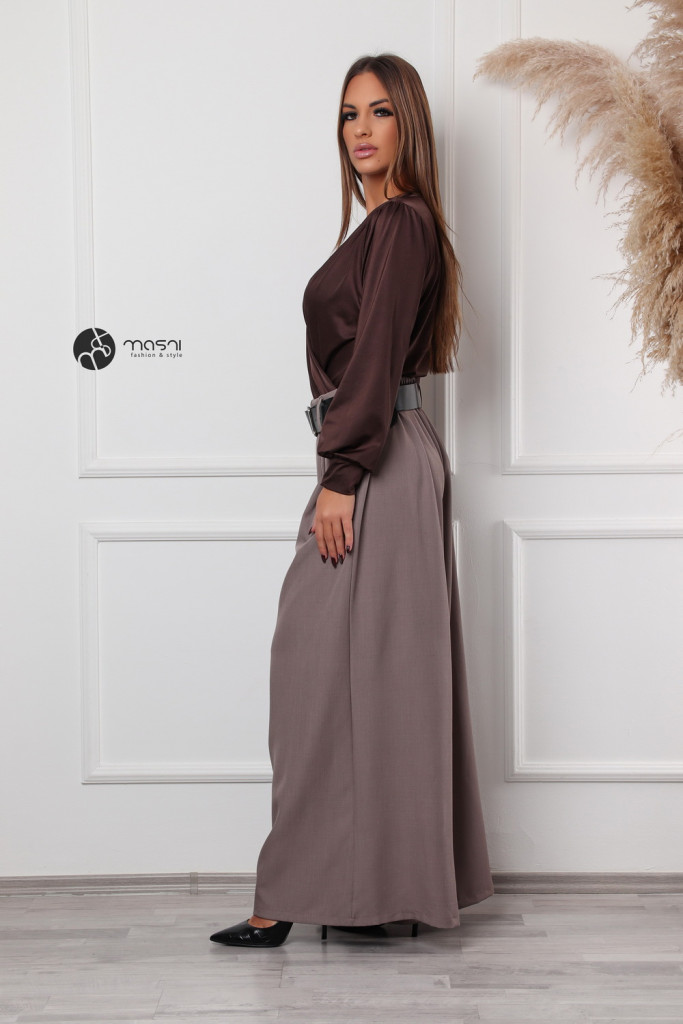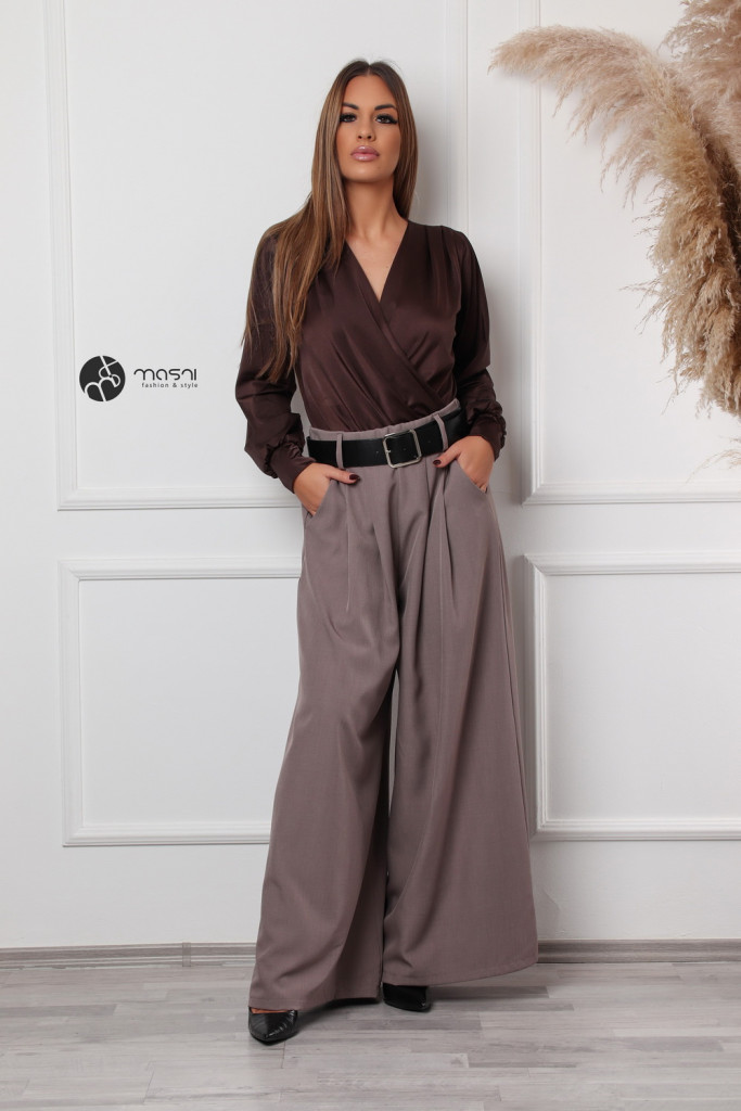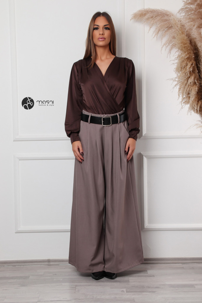 Átlapolt felsőrészes, hosszú ujjú, egyszínű szatén hatású body