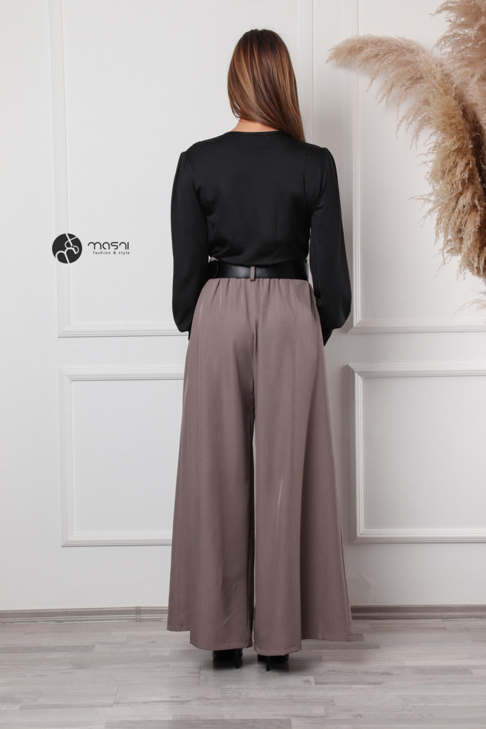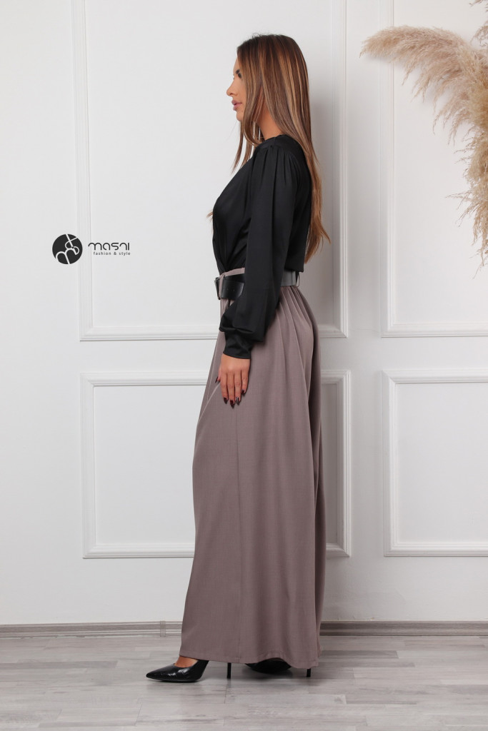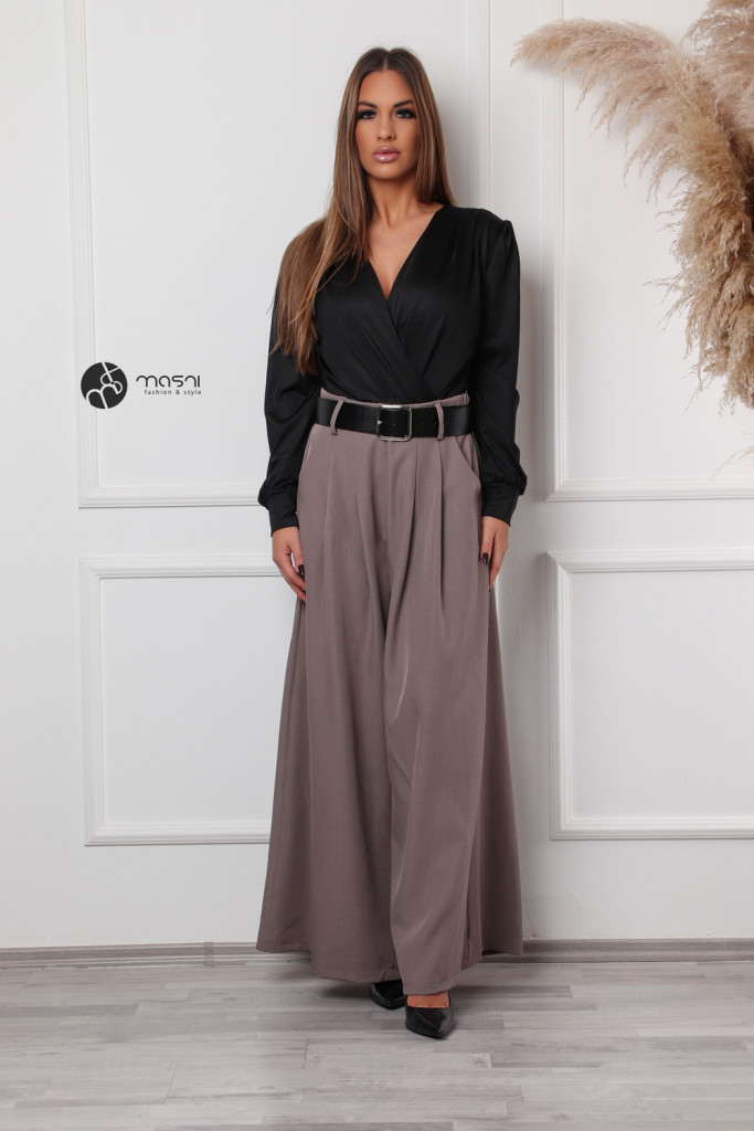 Átlapolt felsőrészes, hosszú ujjú, egyszínű szatén hatású body
