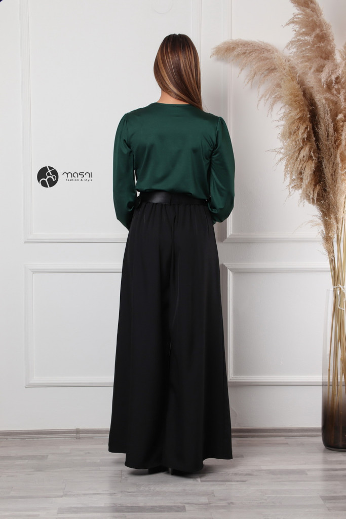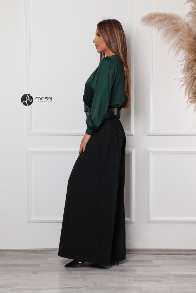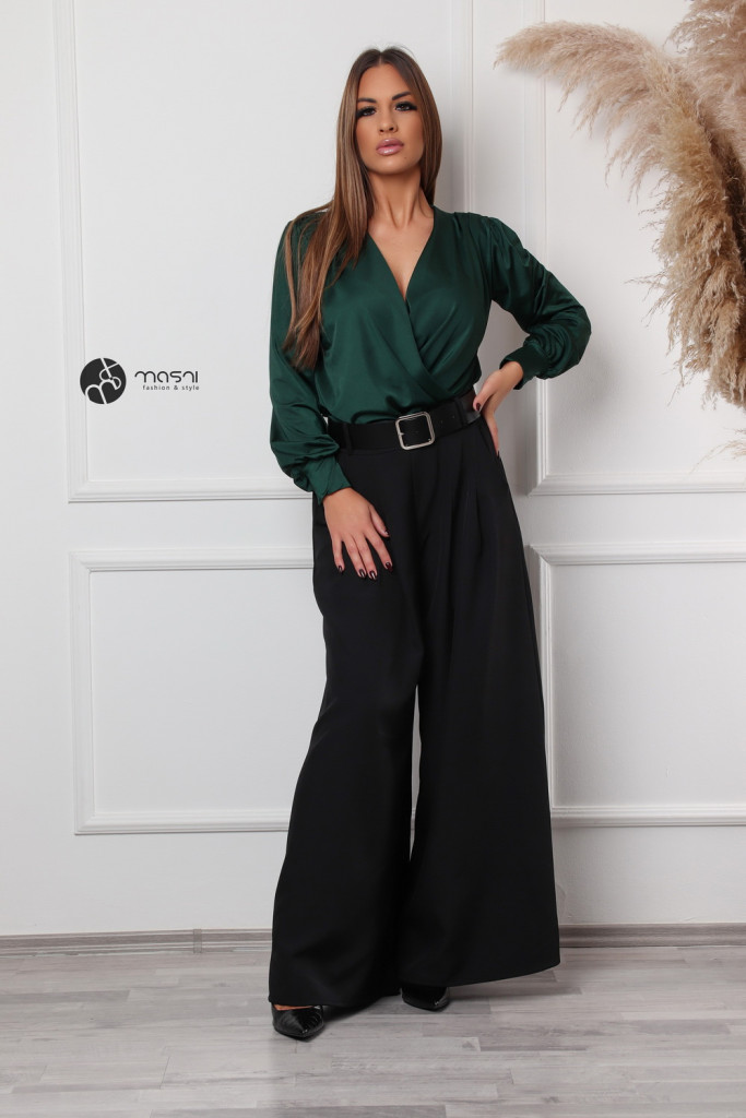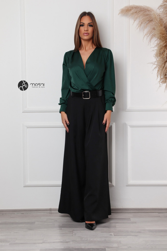 Átlapolt felsőrészes, hosszú ujjú, egyszínű szatén hatású body