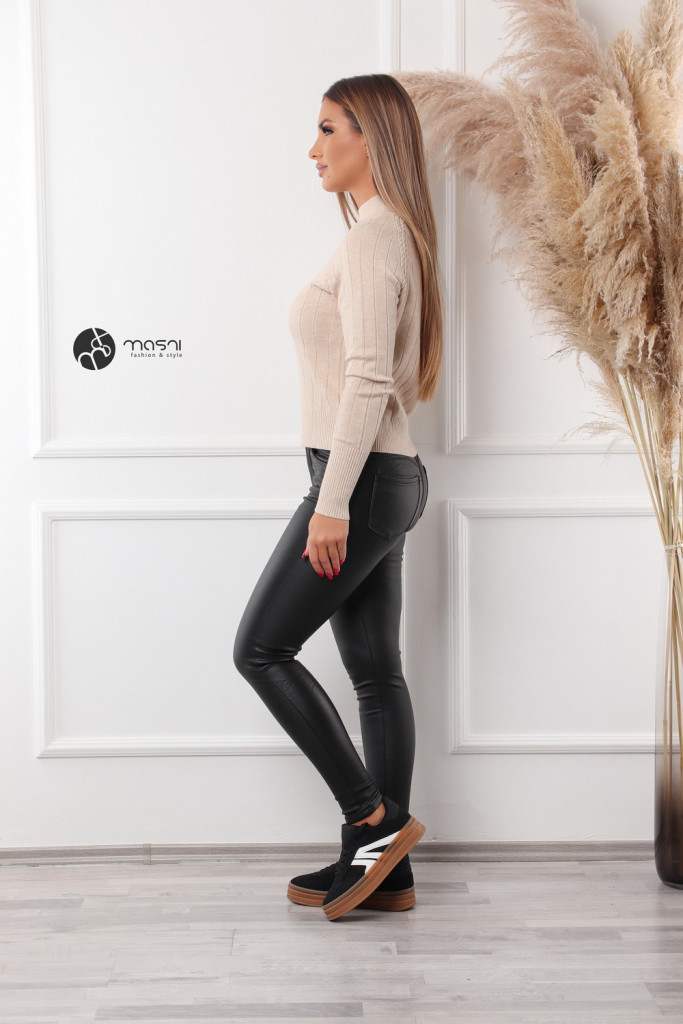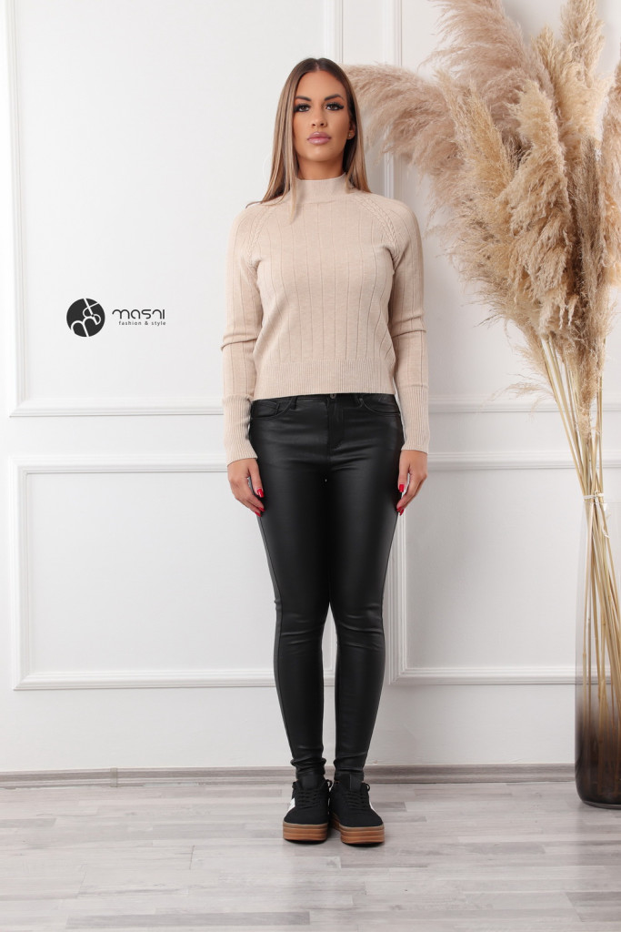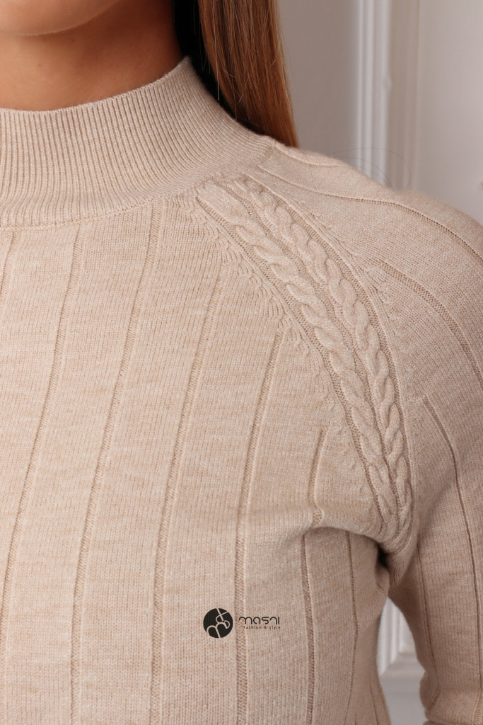 Magas nyakú anyagában csíkos kötött pulcsi bézs