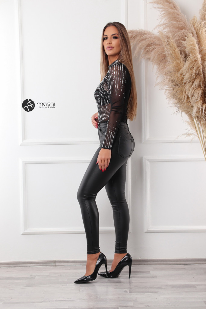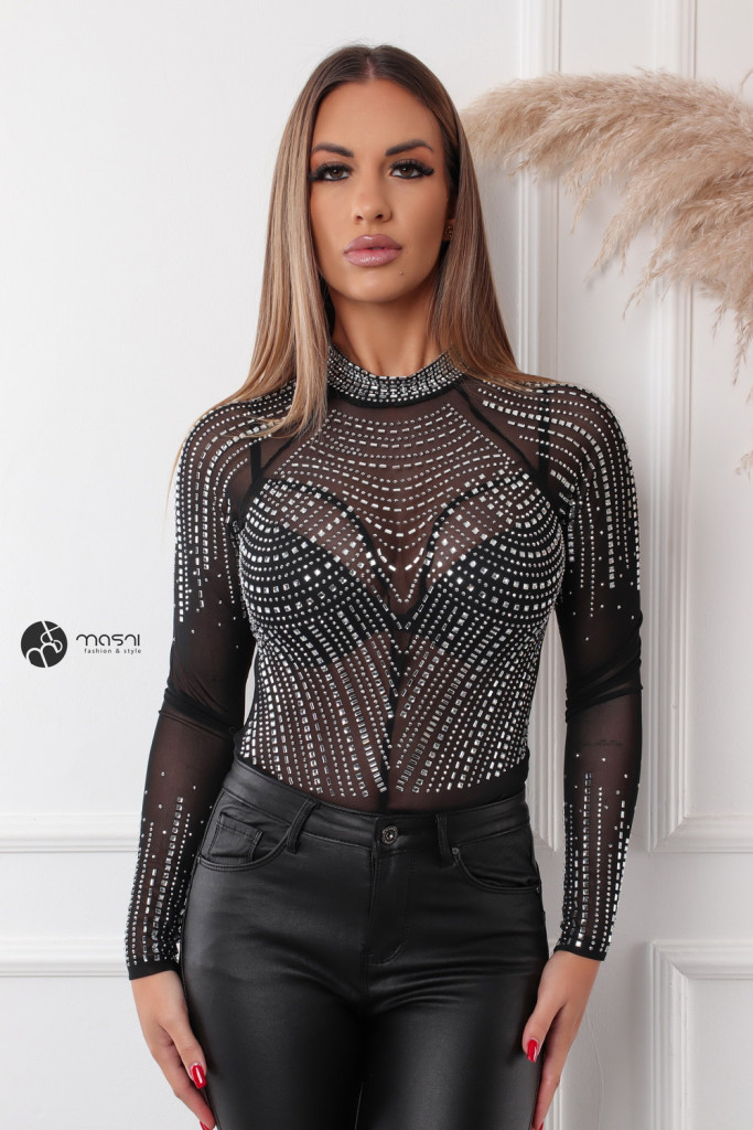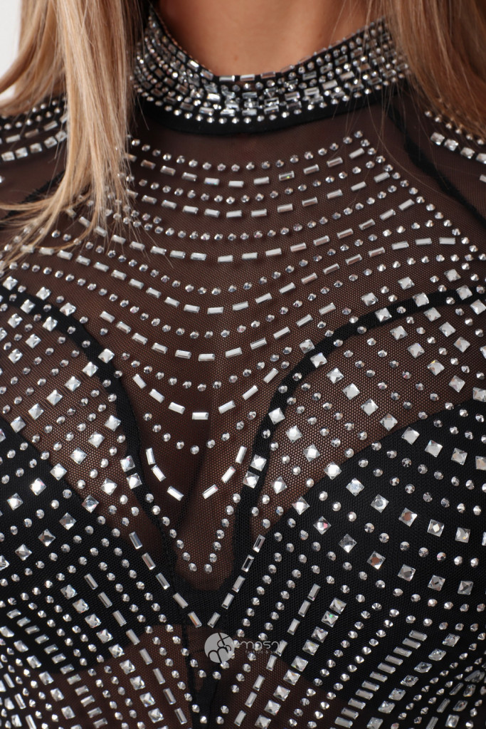Hosszú ujjú, magas nyakú, kövezett necc body