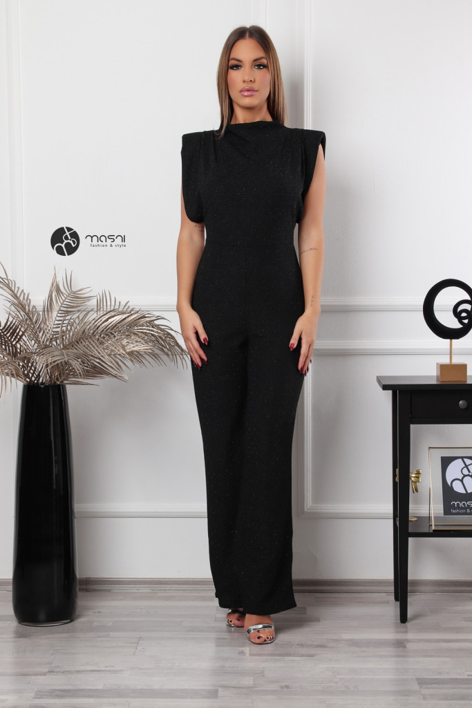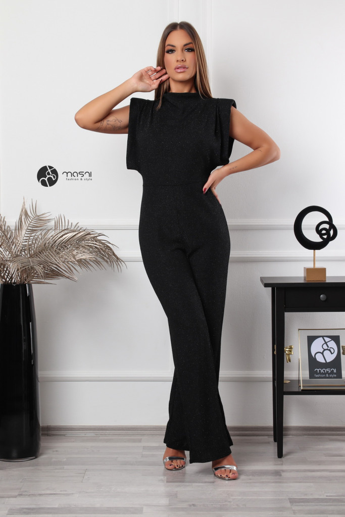 Magas nyakú, ujjatlan, válltöméses, kövezett, bőszárú nadrágos overál