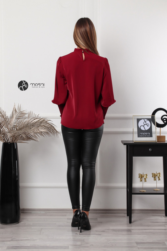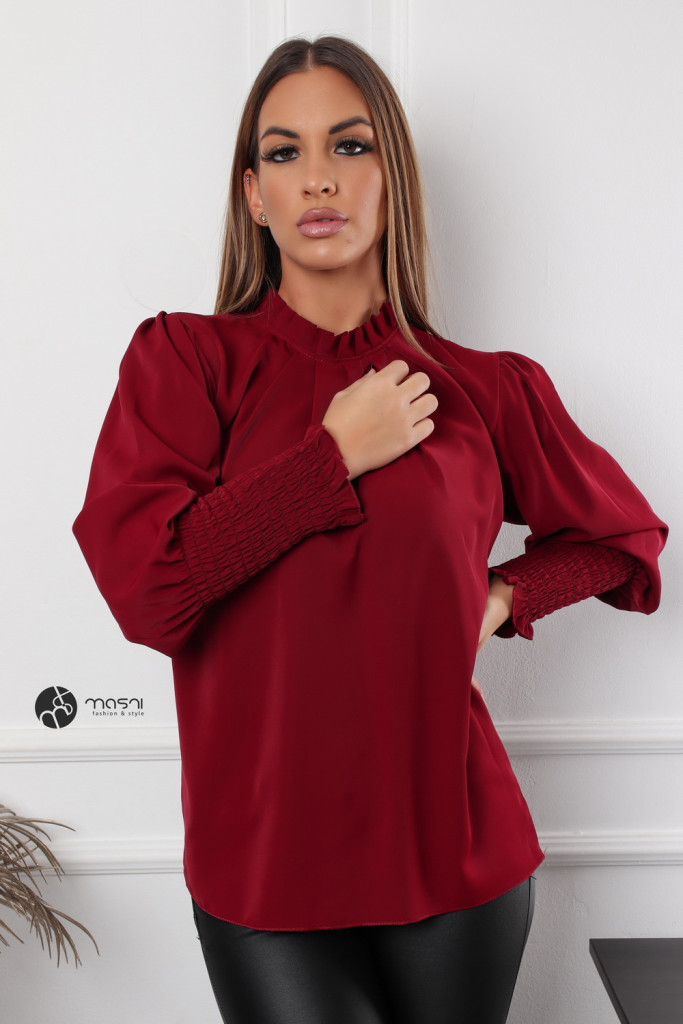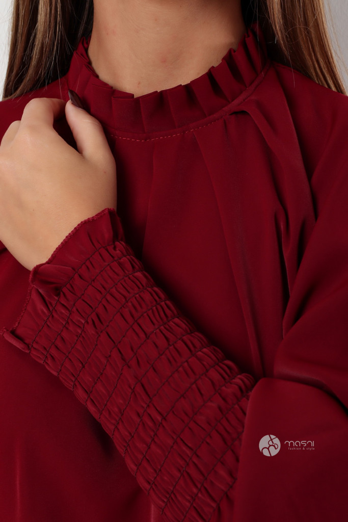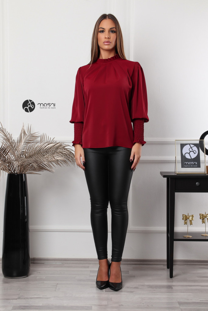 Magas, rakott nyakú, hosszú ujjú, ujján gumírozott egyszínű felső
