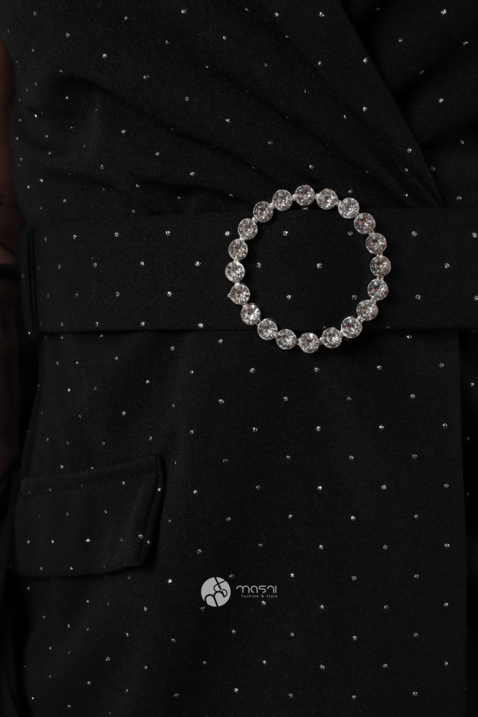 Galléros, necc hosszú ujjú, zsebfedős, válltöméses, kövekkel díszített rövidnadrágos zakó overál
