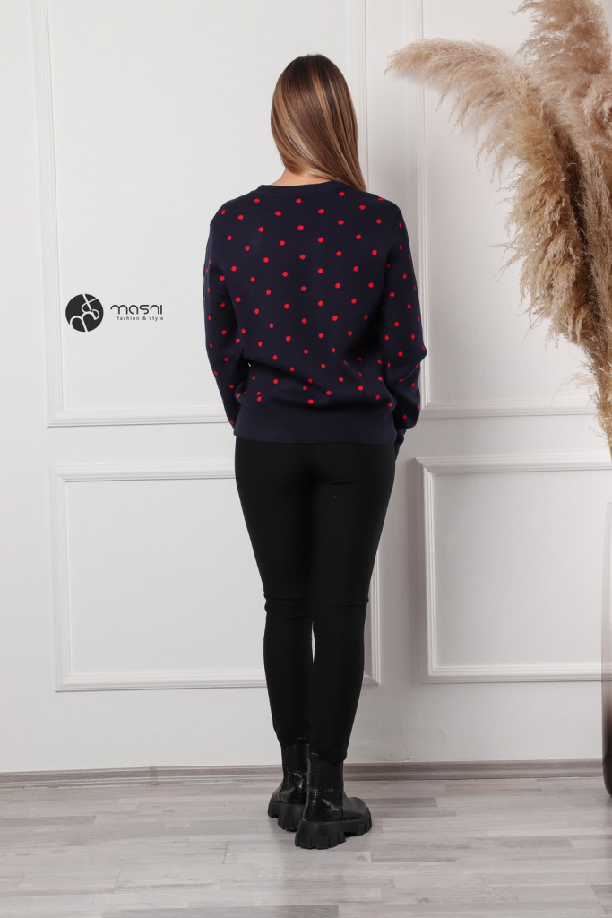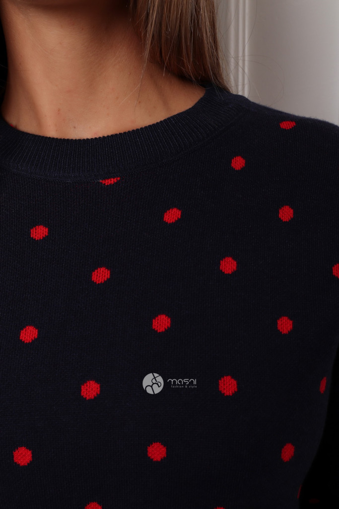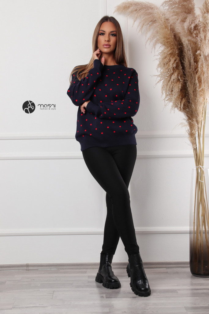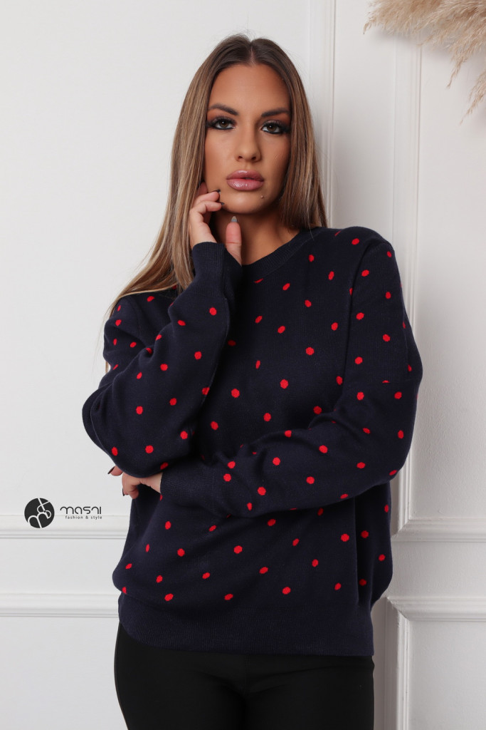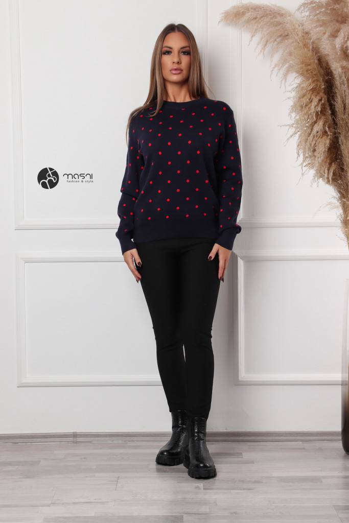 Hosszú ujjú, kerek nyakú, pöttyös kötött pulcsi (vastag, meleg pulcsi)