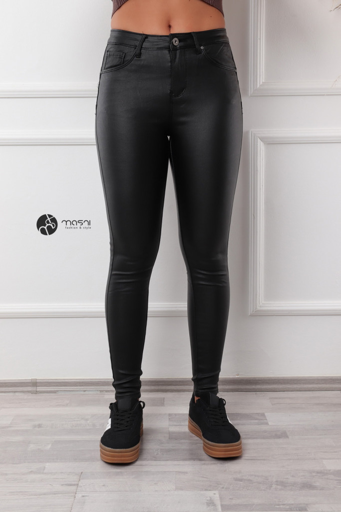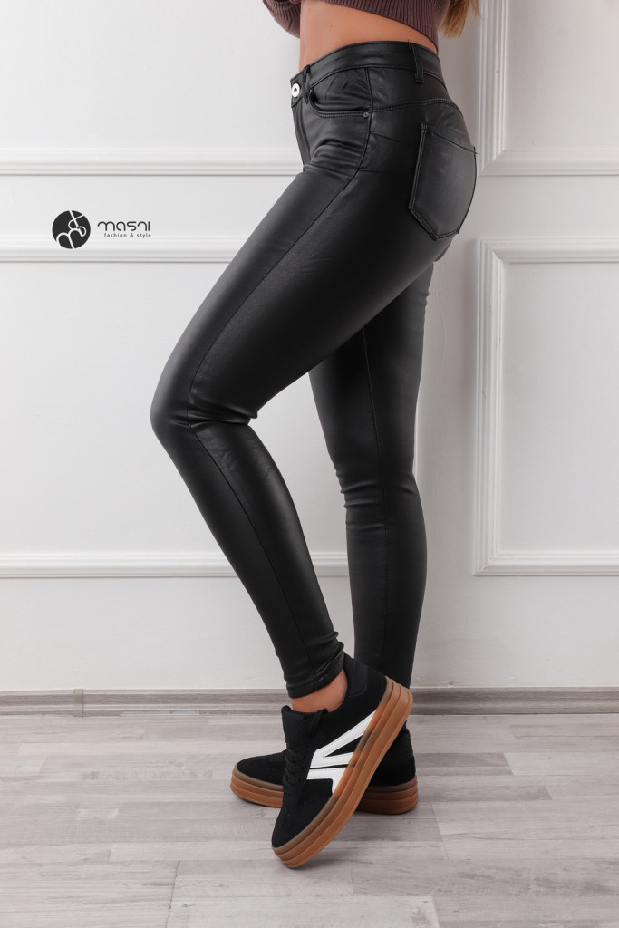 1 gombos, 5 zsebes, push up-os, skinny műbőr nadrág