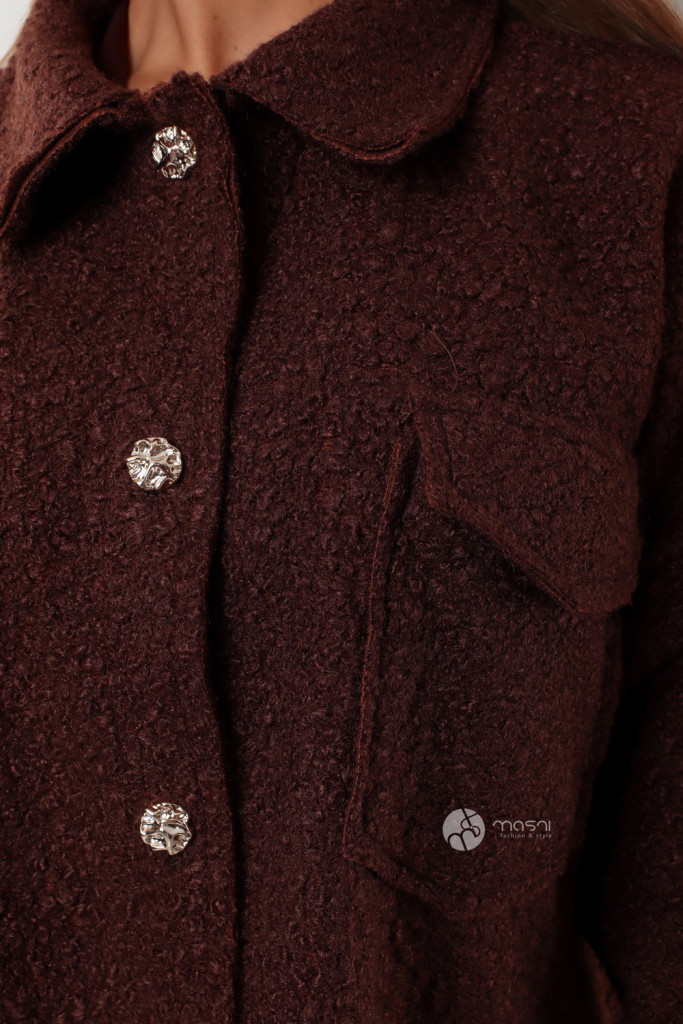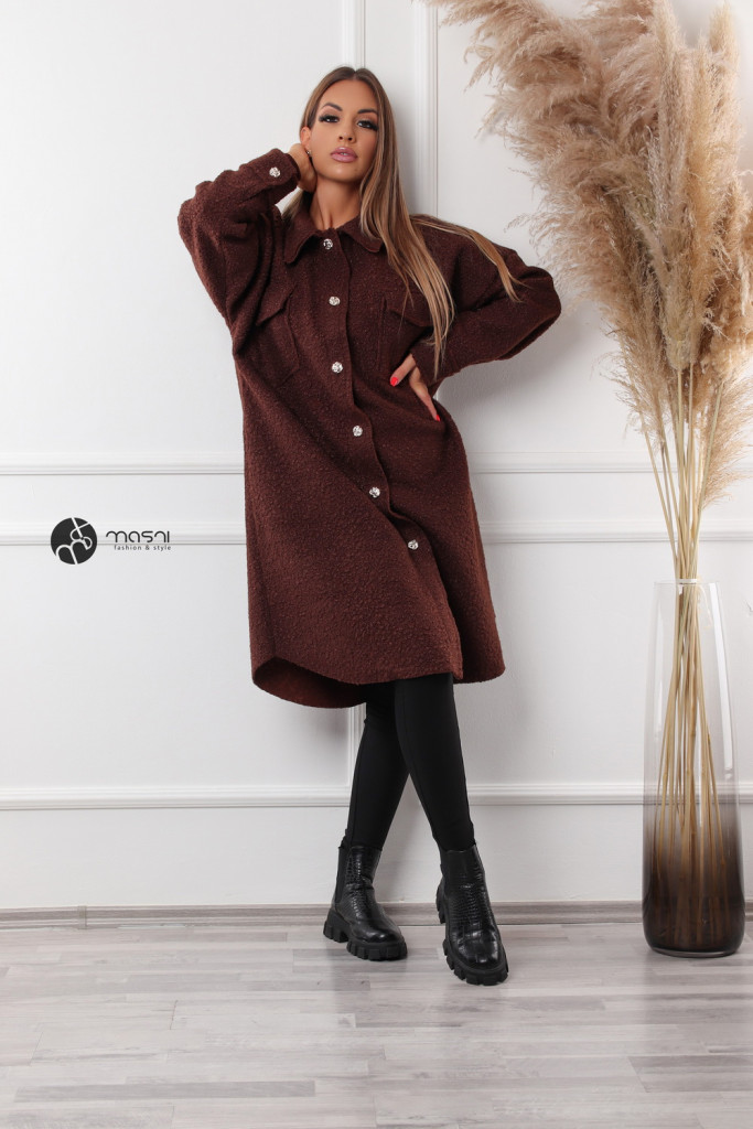 2 zsebes, arany gombos, galléros, egyszínű oversize fazonú kabát