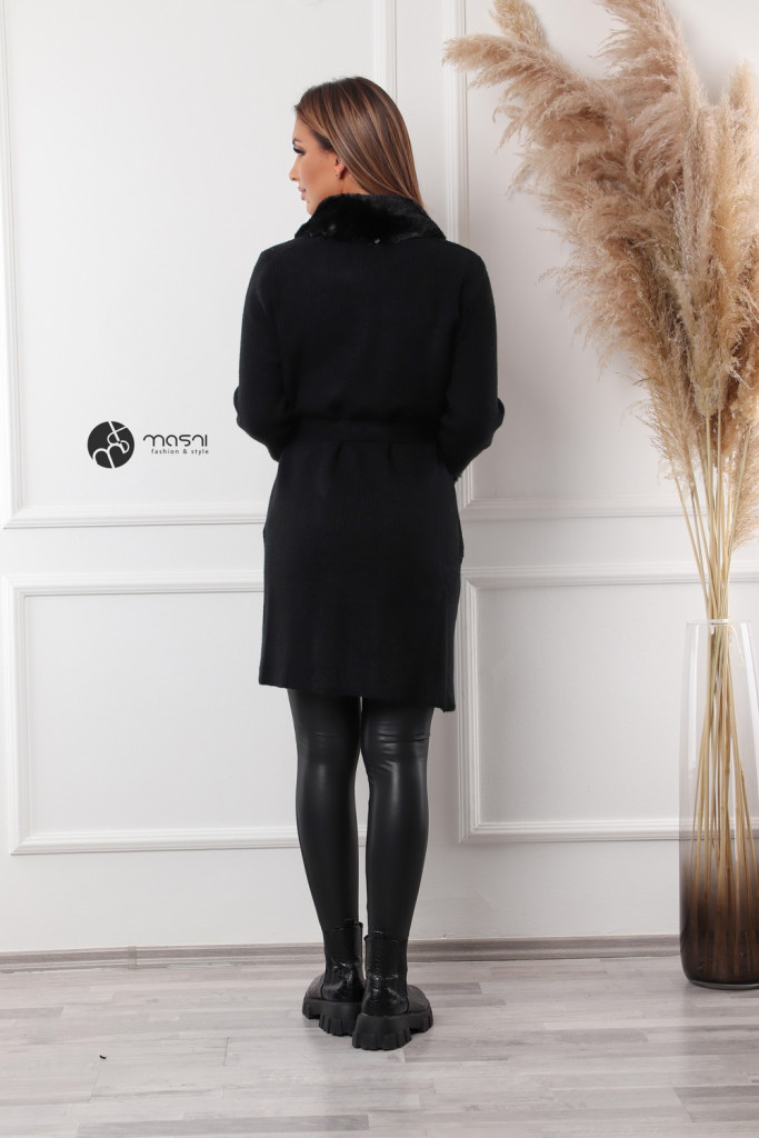 Műszőrme galléros és mandzsettás, 2 zsebes, hosszított kötött kardigán övvel