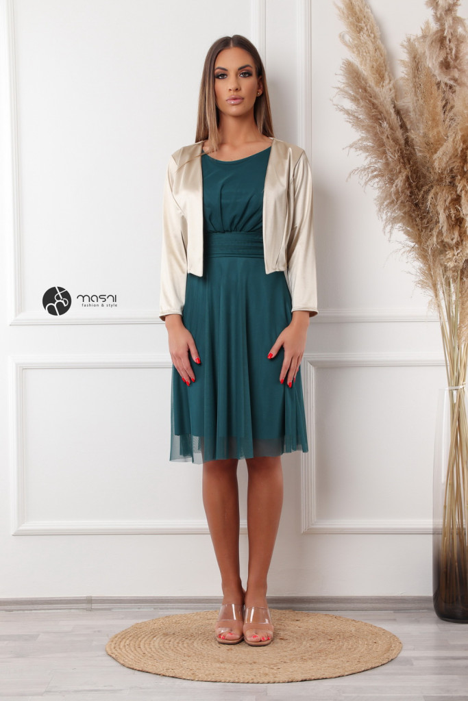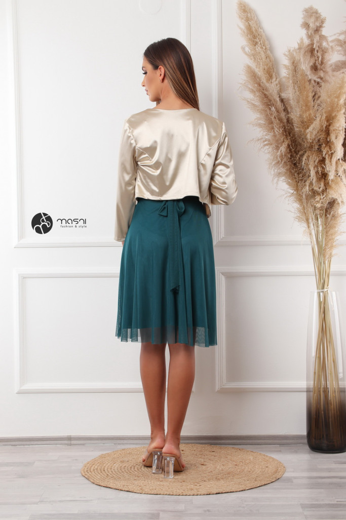 Hosszú ujjú, gomb nélküli egyszínű szatén boleró