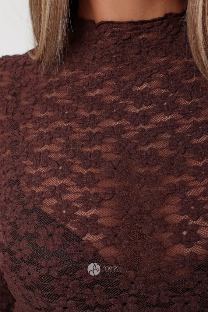 Hosszú ujjú, magas nyakú, virágos egyszínű necc felső