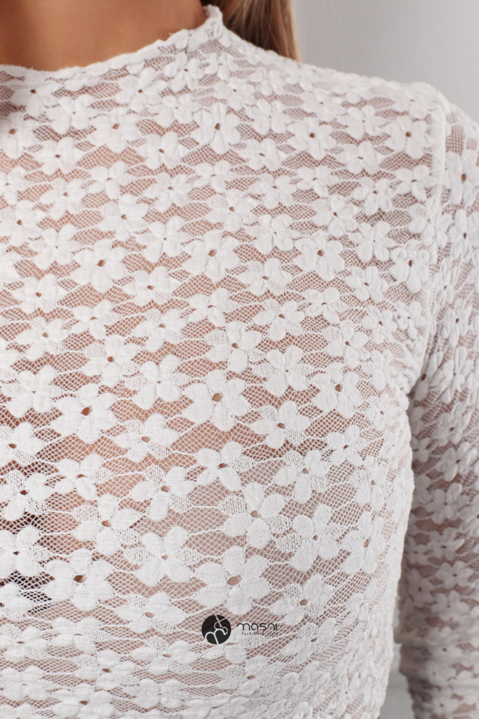 Hosszú ujjú, magas nyakú, virágos egyszínű necc felső