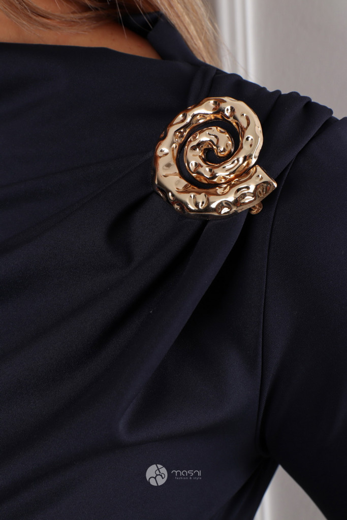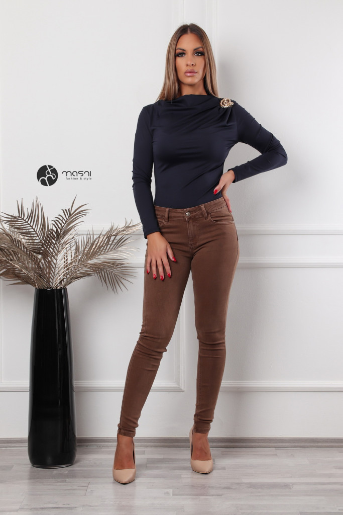 Hosszú ujjú, ejtett nyakú, vállán húzott és arany kellékes egyszínű poli body