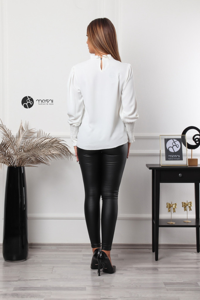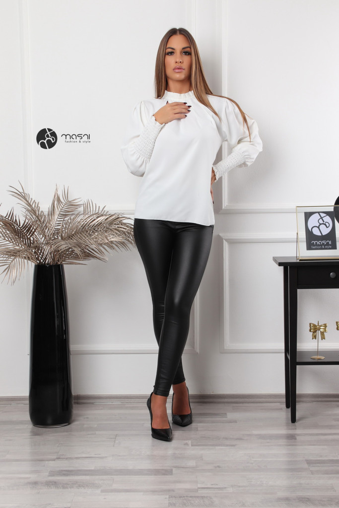 Magas rakott nyakú, hosszú ujjú, egyszínű felső fehér