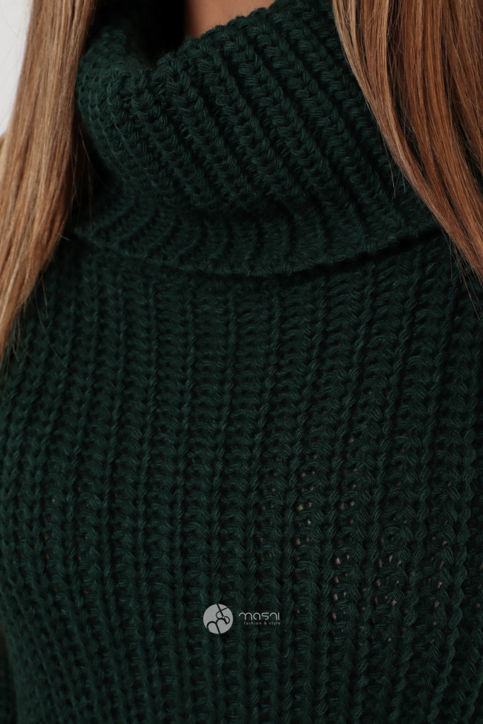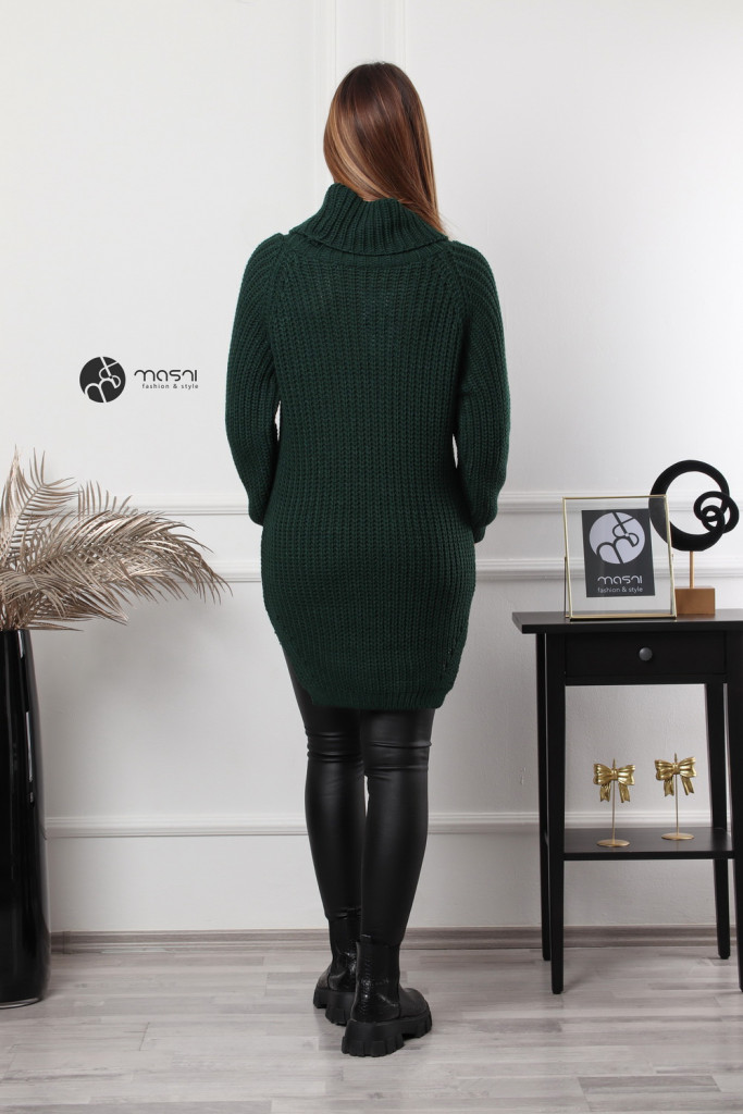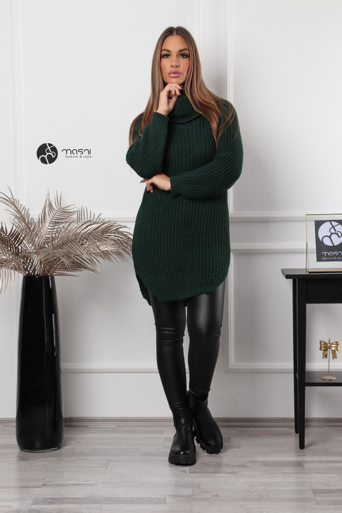 Garbós nyakú, hosszú ujjú, kétoldalt sliccelt egyszínű kötött pulcsiruha